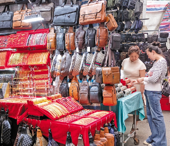記者所見,街內主要販賣箱包衣物及紀念品,走過三段街檔,商品種類大多重複,「I LOVE HK」字樣的同款衣物、雪櫃貼等商品,多不勝數,售賣的首飾亦是大批「撞款」。在街內的旅客多是環顧數眼便離開,少有停留問價。