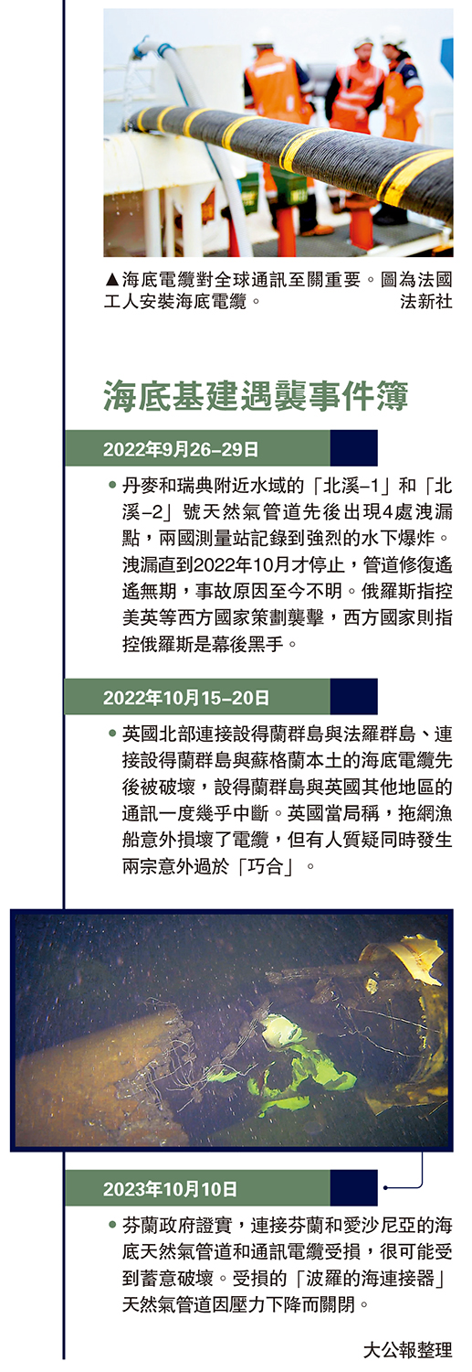•芬蘭政府證實,連接芬蘭和愛沙尼亞的海底天然氣管道和通訊電纜受損,很可能受到蓄意破壞。受損的「波羅的海連接器」天然氣管道因壓力下降而關閉。