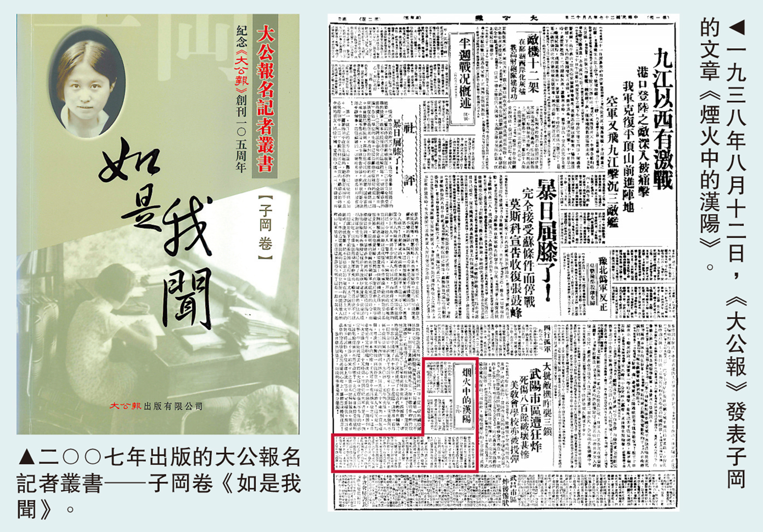一九三九年五月四日,子岡在《大公報》發表《五·三的血仇更深了》。同一天,《大公報》也發表社論《血火中奮鬥》,兩篇文章同放在一版上,影響很大,它表達了中國人民堅決抗戰到底的鬥志和勇氣。