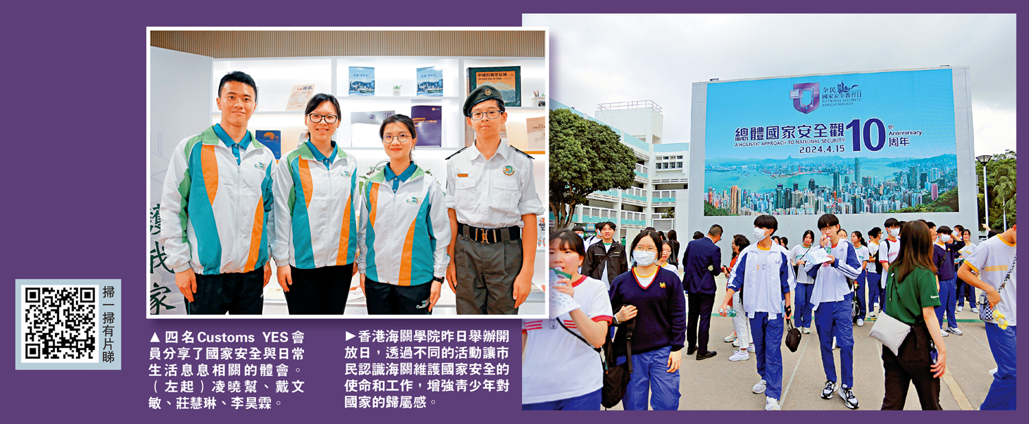 現為香港大學翻譯系一年級生的戴文敏,除了是Customs YES會員,還是青年國安大使。她說:「透過Customs Yes舉辦的各種教育導向活動和青年國安大使的培訓活動,我深刻體會到國家安全是國家發展的重要保障。軍事、國土這些重大國家話題好像距離我們很遠,但其實好像糧食安全這些民生的事,也是與國家安全息息相關的。」她指出,每個人都應樹立起維護國家安全的意識和使命,「維護國安人人有責」。