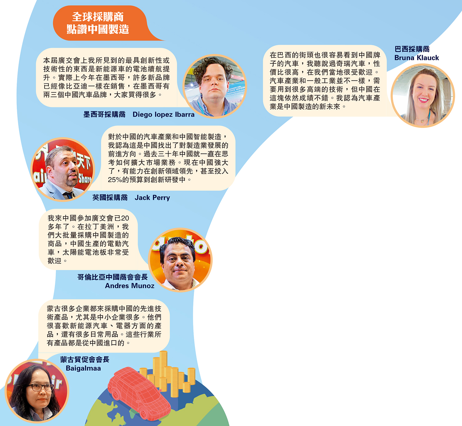 本屆廣交會上我所見到的最具創新性或技術性的東西是新能源車的電池續航提升。實際上今年在墨西哥,許多新品牌已經像比亞迪一樣在銷售,在墨西哥有兩三個中國汽車品牌,大家買得很多。