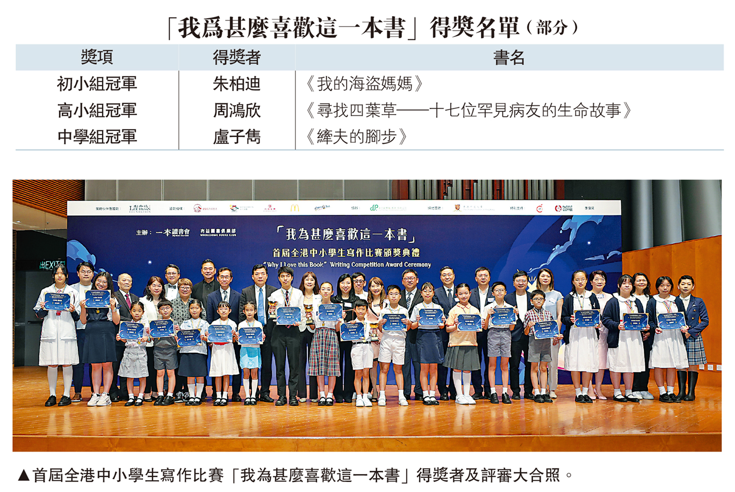 【大公報訊】由聯合出版集團旗下「一本讀書會」聯同「有益圖書俱樂部」主辦的首屆全港中小學生寫作比賽「我為甚麼喜歡這一本書」頒獎典禮,於4月21日在香港中文大學利希慎音樂廳舉行。
