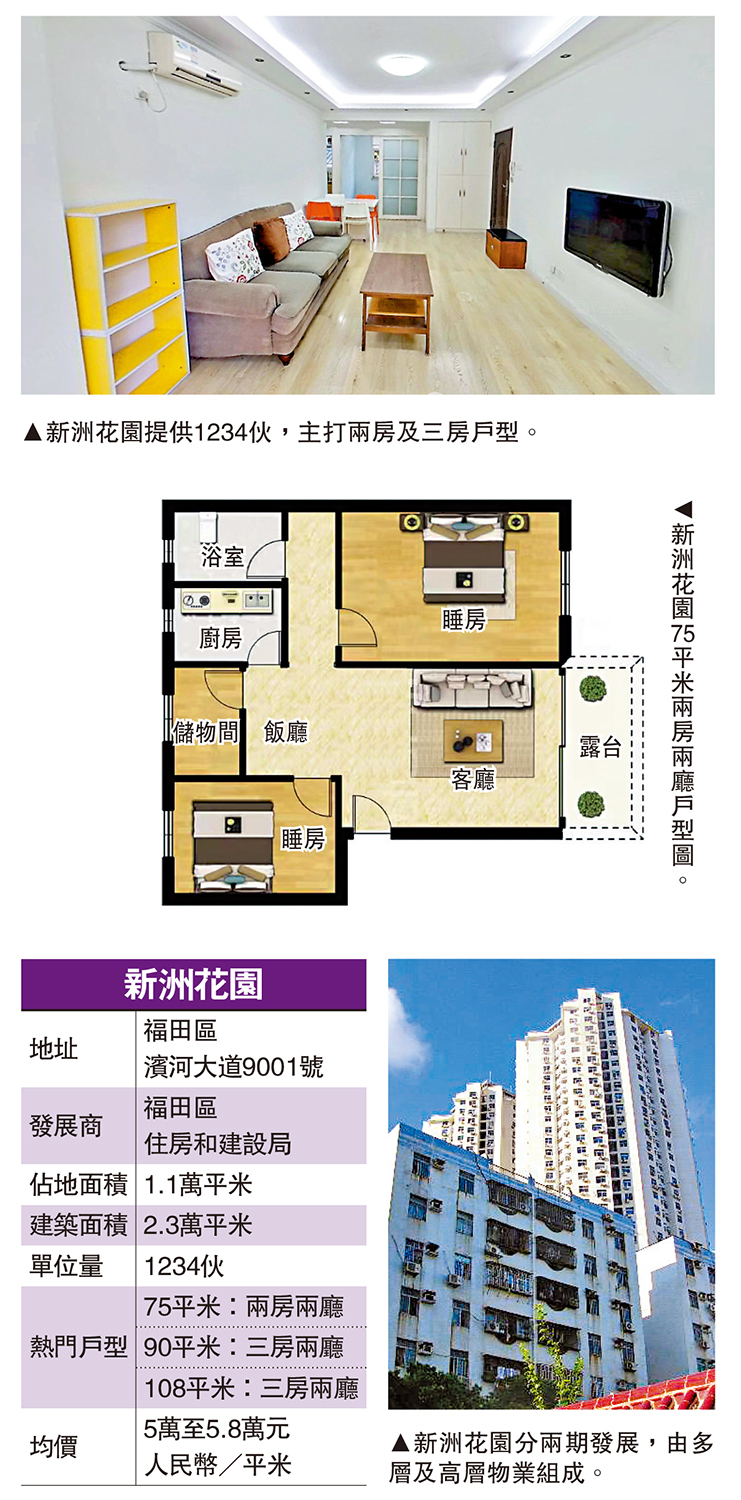 新洲花園第一期為一梯兩戶設計,單位使用率較高,戶型方正實用,成交均價約5萬至5.8萬元(人民幣,下同);第二期單位成交均價約5.1萬元。