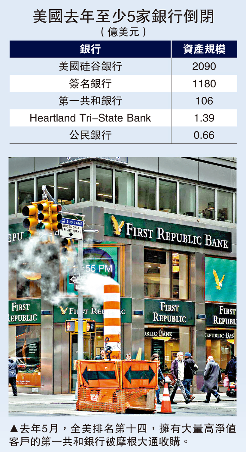 總部在費城的共和第一銀行,是美國今年第一家倒閉銀行,早前放棄與投資者的融資談判。根據FDIC的數據,美國去年共有5家銀行倒閉。