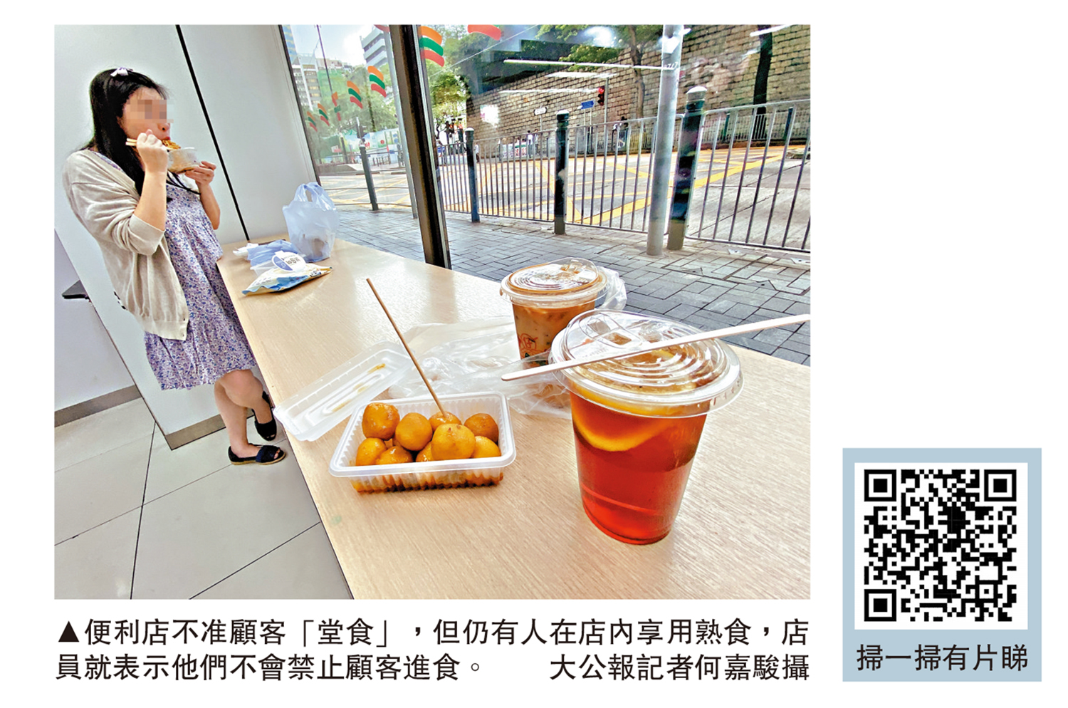 【大公報訊】記者劉碩源報道:香港生活節奏快,不少市民會到便利店買魚蛋、燒賣等小食「醫肚餓」,但政府宣布管制即棄塑膠餐具後,有便利店就強調店內熟食、飲品只作外賣,以符合法例要求,引起熱議。大公報記者昨日走訪兩間分別位於尖沙咀及旺角的連鎖便利店,實測發現店員將熟食、飲品視作外賣處理,但兩間店就「堂食」的安排就各有不同。