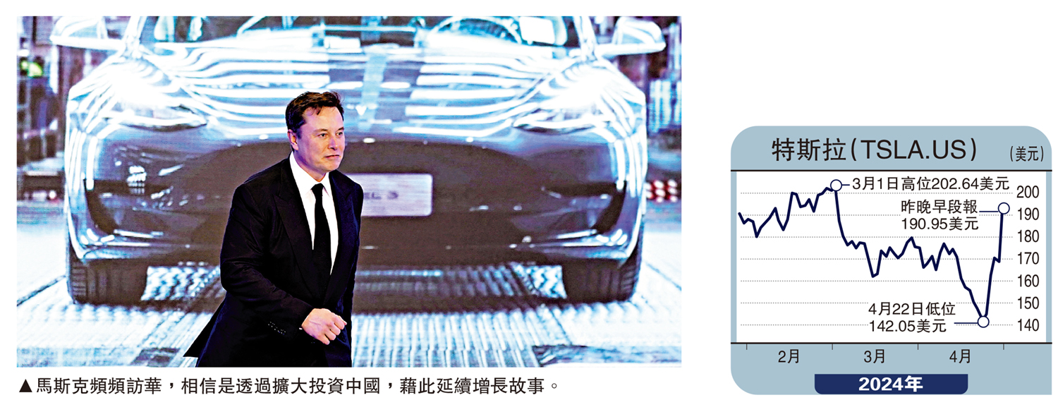 事實上,外商投資中國,就是投資未來,從中釋放更大增長潛力。以滙豐控股為例,重返亞洲、加大投資中國的戰略見效,季績符合市場預期,股價見逾6年高位。至於馬斯克頻頻訪華,相信是透過擴大投資中國、投資未來,藉此延續增長故事。據報特斯拉正爭取在華推出自動駕駛(Full-Self Driving)系統,推動智能汽車發展,對延續特斯拉業務與電動車行業增長至關重要,有利股價止跌回升,這是馬斯克無閒去印度也要抽空到訪中國的因由所在。特斯拉股價從歷史高位回落逾半,市值曾破5000億美元,但近日特斯拉股價有喘定回升跡象,本周一股價勁升逾15%,反映市場對特斯拉擴大投資中國的認同。