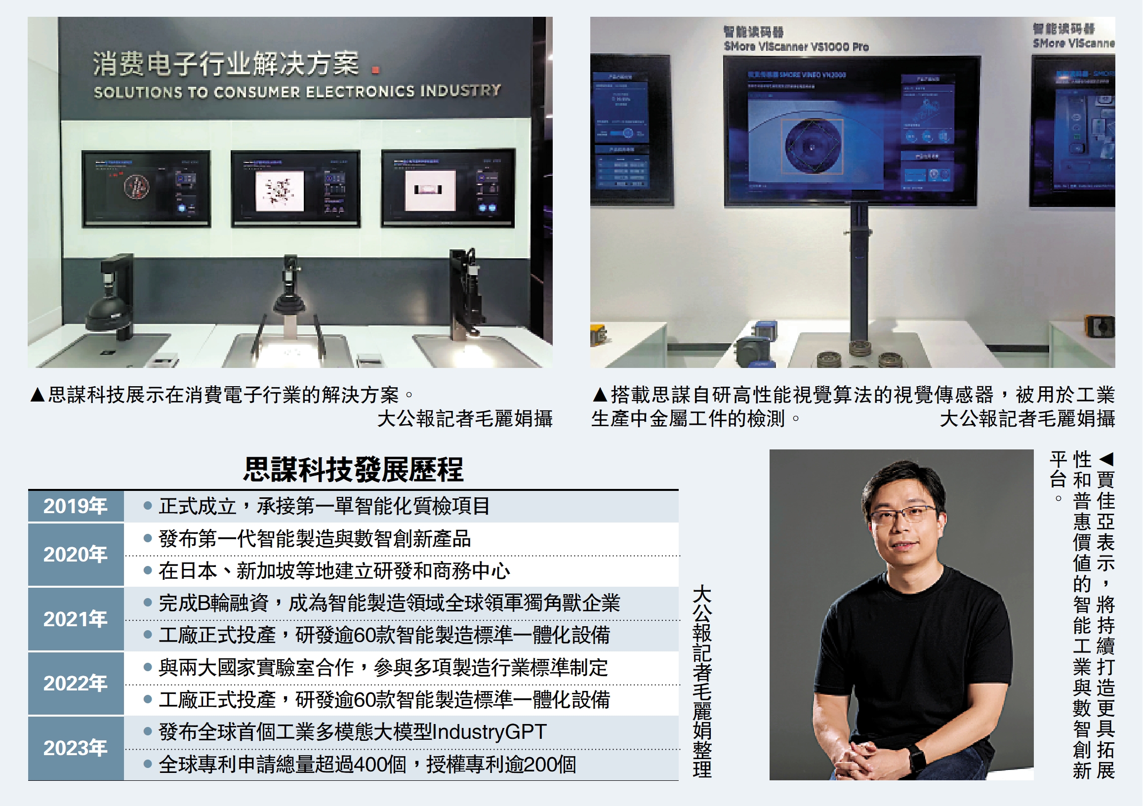 智能製造與數智創新企業思謀科技(SmartMore)在去年底開發出全球首個工業多模態大模型IndustryGPT V1.0。創始人、董事長賈佳亞透露,公司一開始確立走全球化路線,不能僅服務中國市場,要先考慮用足亞洲各大區域的優勢。IndustryGPT將持續開發,2.0版本有望今年發布,最終走向真正的智能體。屆時,IndustryGPT將使機械系統不再是僵化的實體,而是成為可根據實時需求和數據變化做出智能決策,實現自主控制和協作的智能體。\大公報記者 毛麗娟