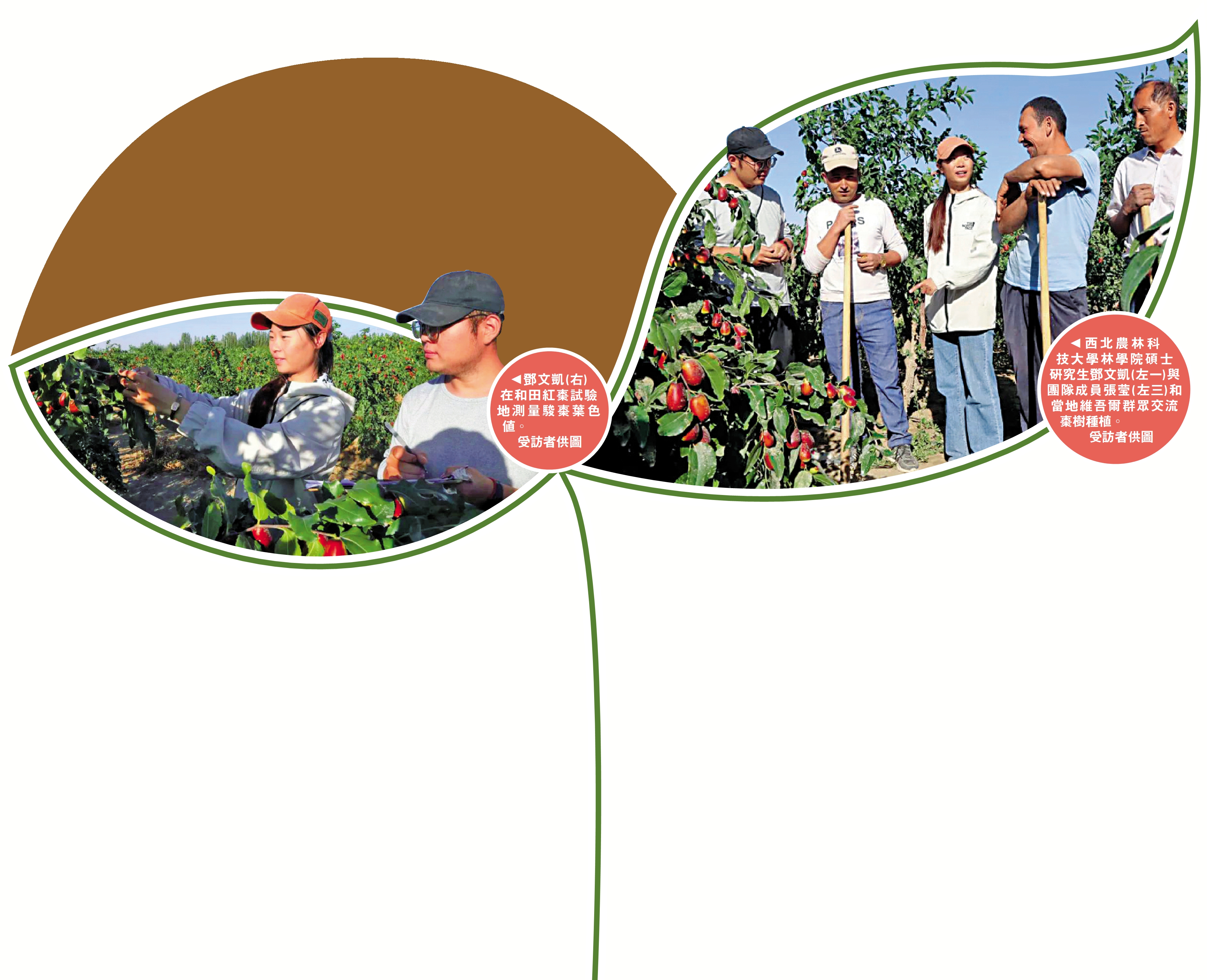 雖然辛苦,但是科研數據卻逐漸積累起來。「把知識帶到天地裏面來學,把實驗做在新疆和田的大地上,把試驗成果帶給當地的老百姓。」最令鄧文凱開心的是,日復一日的相處,讓當地果農逐漸意識到科學種植的重要性。他們對科技的需求變得迫切,總想再多學一點。