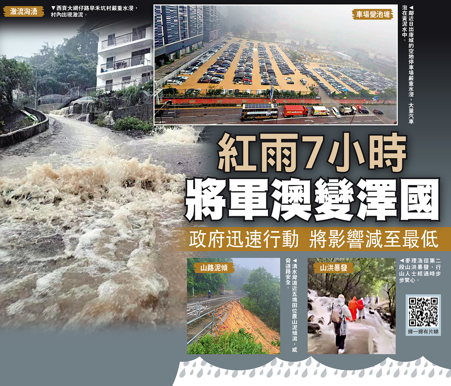 政府表示,持續暴雨令本港多區出現水浸及山泥傾瀉,各相關部門迅速應對,將影響減至最低。有學者指出,近年極端天氣頻率愈來愈高,建設和完善防災體系迫在眉睫。有議員表示,當局應更積極應對頻密發生的極端天氣。\大公報記者 古倬勳、盛德文、葉浩源(文)葉浩源、古倬勳、許棹傑(視頻)
