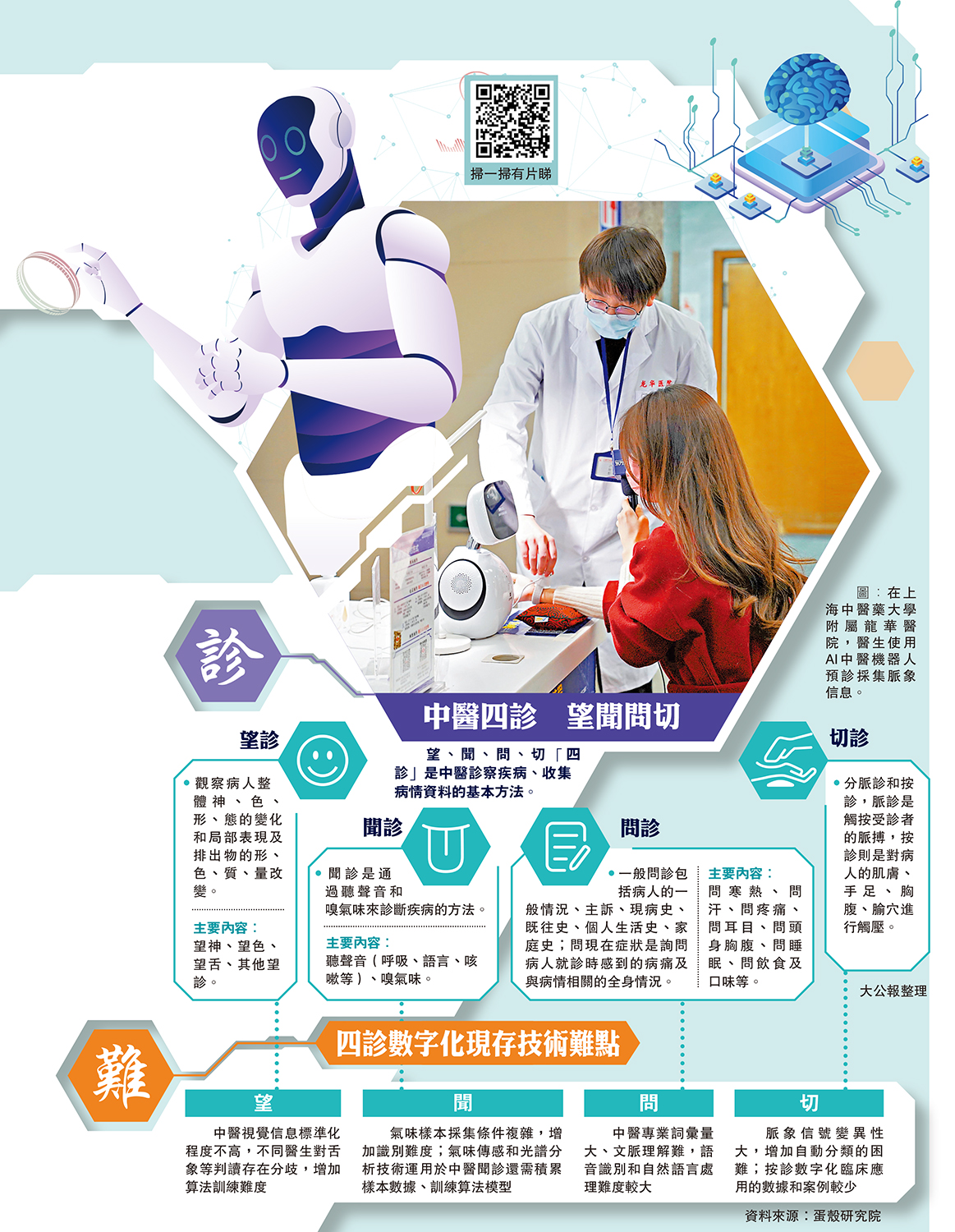 在上海市中醫醫院,拍一張照片,患者就可以通過互聯網醫院進行中醫中的「舌診」;照一面「鏡子」,人工智能就能根據數據資料分析出患者的體質信息。雲上「望聞問切」、大數據體質測試、遠程會診、互聯網看診……如今,看似傳統的中醫也早已擁抱數字化,嘗試打破時空壁壘、縮短醫患距離。數字科技在令中醫醫生快速掌握患者情況、高效開出中醫處方的同時,患者也得以一目了然地從中醫角度了解自身的健康狀況。\大公報記者 倪夢璟