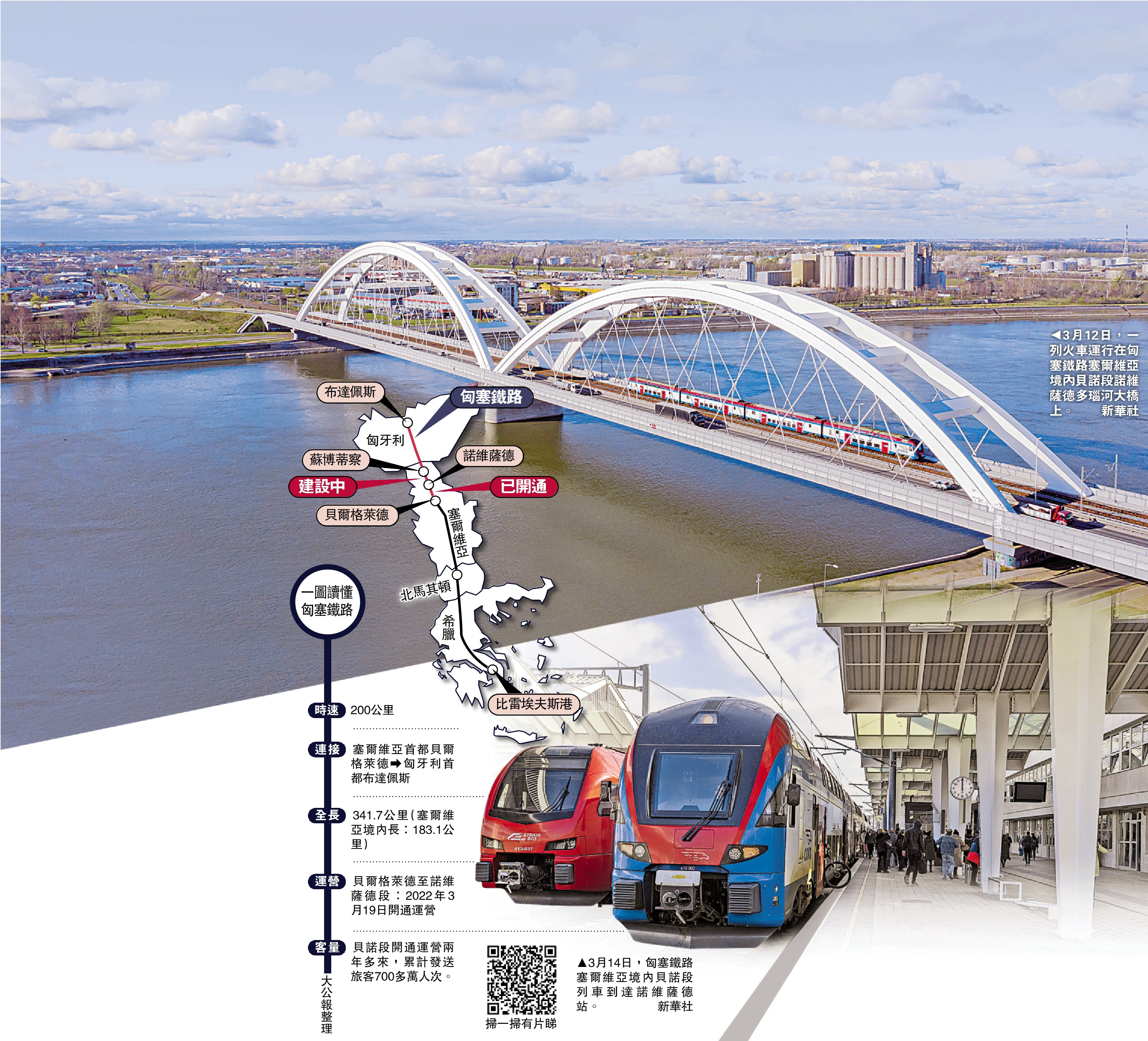 匈塞鐵路連接匈牙利首都布達佩斯和塞爾維亞首都貝爾格萊德,線路全長341.7公里,是中國與中東歐國家共建「一帶一路」的標誌性項目。2022年3月,匈塞鐵路塞爾維亞境內貝爾格萊德至諾維薩德段(下稱「貝諾段」)順利開通運營。當地民眾紛紛表示,這是中國送給塞爾維亞的重要禮物,是一條友誼之路、幸福之路,讓他們的就業更便捷,生活更美好。