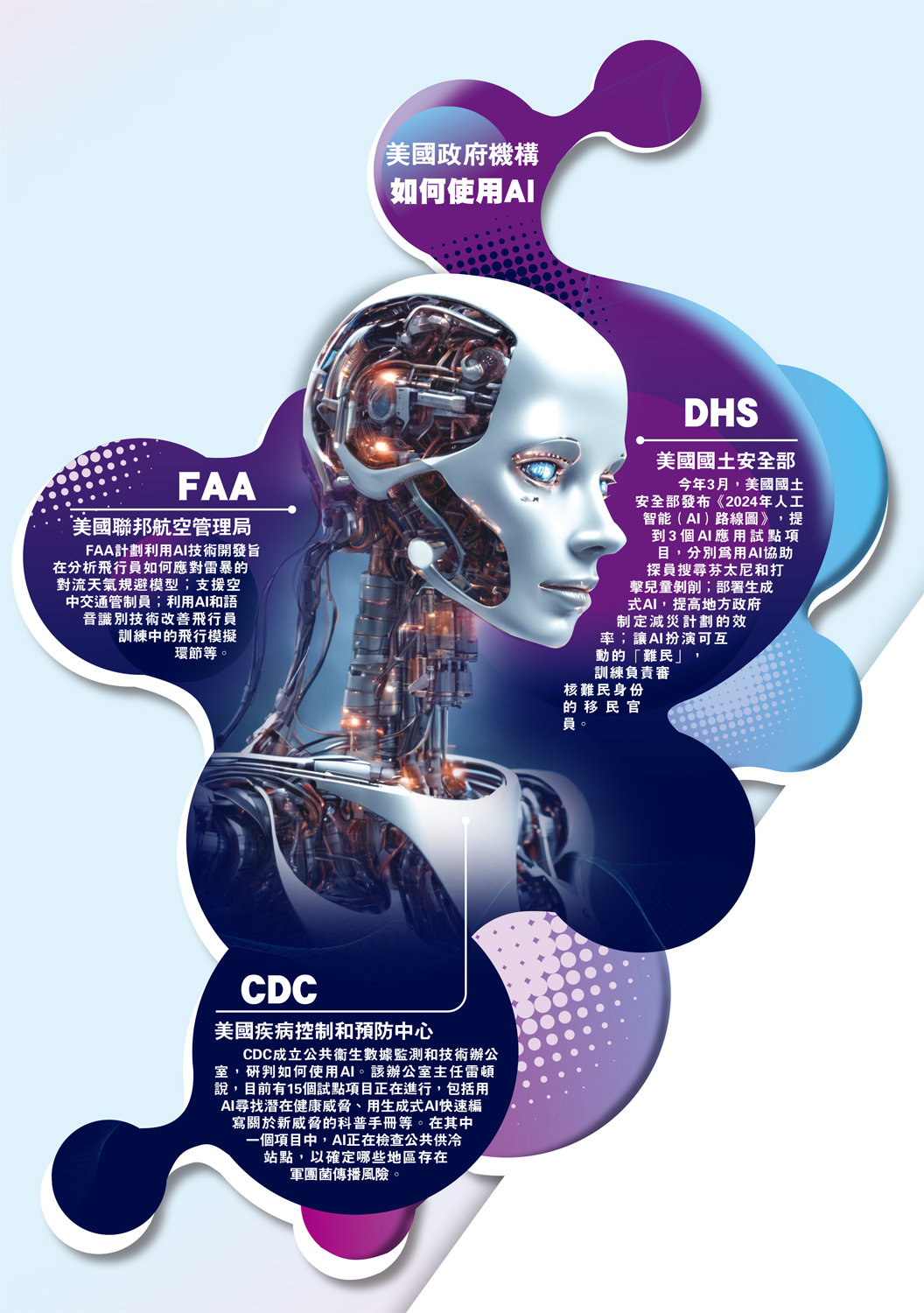 CDC成立公共衞生數據監測和技術辦公室,研判如何使用AI。該辦公室主任雷頓說,目前有15個試點項目正在進行,包括用AI尋找潛在健康威脅、用生成式AI快速編寫關於新威脅的科普手冊等。在其中一個項目中,AI正在檢查公共供冷站點,以確定哪些地區存在軍團菌傳播風險。