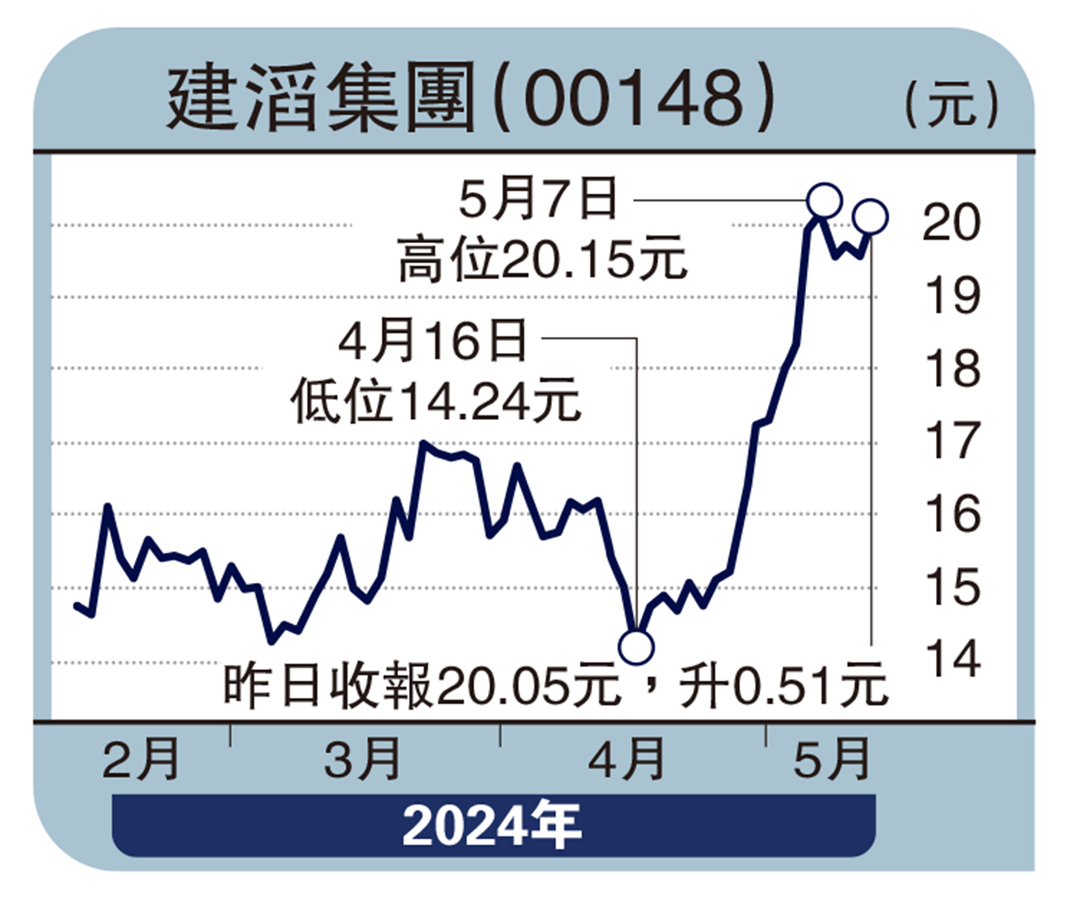 股價方面,建滔今年首4個月跌至近4年的低位,出現三底後,終有反彈,一舉突破所有平均線,現於高位整固,看好行業前景下,可於19元水平買入,目標22元,跌破18元止蝕。