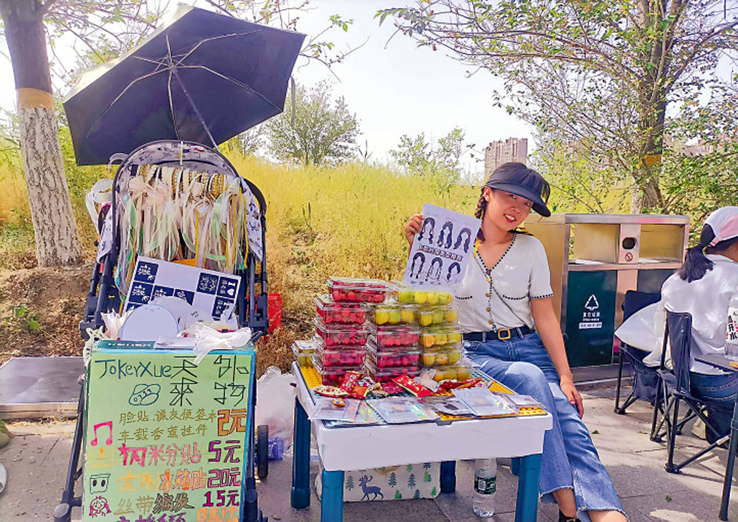 「4月初沒有搶到鳳凰傳奇鳥巢演唱會的門票,反正要在場外聽,不如早點去賣點東西再聽。」網友eidolonnn已經有兩次演唱會編髮擺攤經驗了,4月20日李榮浩演唱會收入675元,5月4日鳳凰傳奇演唱會收入638元,可謂「低成本高回報」。演唱會場外的擺攤大軍提供的商品和服務多種多樣,可以滿足粉絲們的基本需求,除了售賣食物飲品,還有短租熒光棒、手寫應援扇以及即影即有等貼心服務。有老闆表示,「不愁壓貨,這次賣不完的,再打包處理給下一站演唱會的商家。」