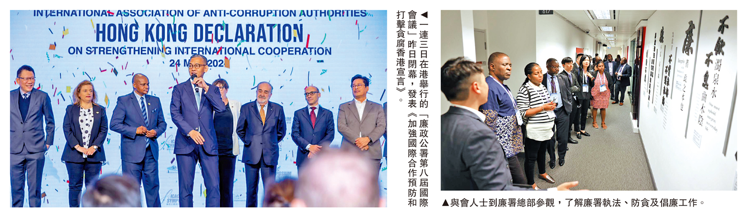 一連三日在香港舉行的「廉政公署第八屆國際會議」昨日閉幕,會上發表《加強國際合作預防和打擊貪腐香港宣言》。這是首個以香港命名的反貪國際宣言。