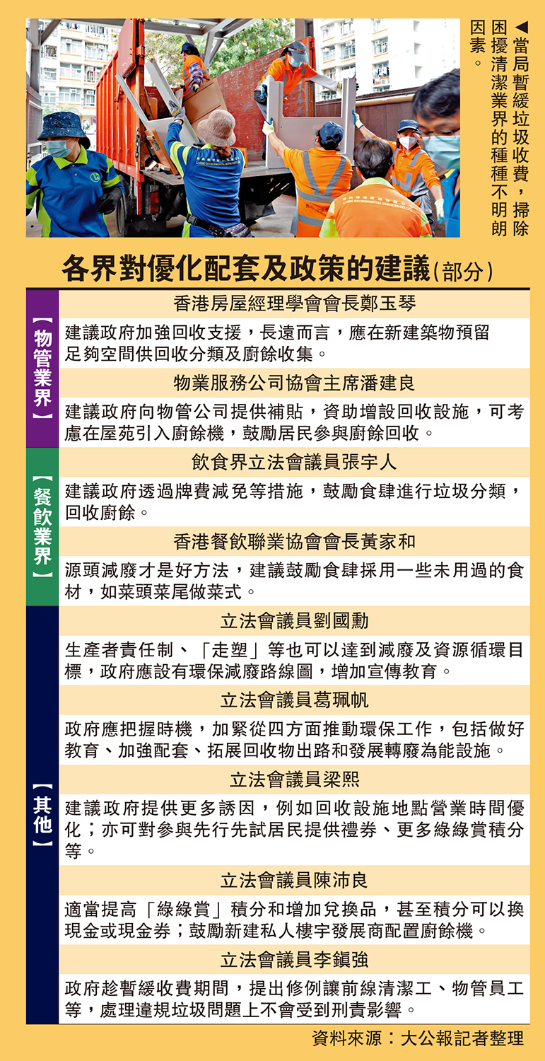 政府趁暫緩收費期間,提出修例讓前線清潔工、物管員工等,處理違規垃圾問題上不會受到刑責影響。