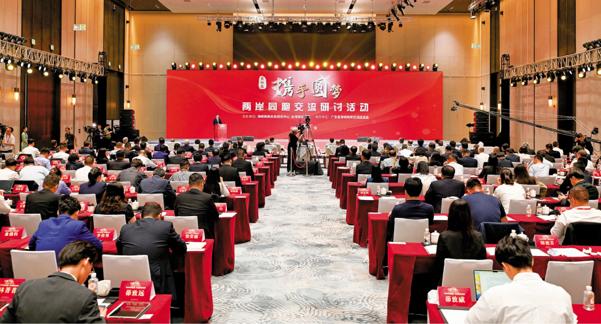 以「守護共同家園 共創民族未來」為主題的第四屆「攜手圓夢──兩岸同胞交流研討活動」29日在廣州開幕。海峽兩岸有關方面、黨派團體負責人和代表,專家學者及台胞台青代表200餘人出席。中共中央政治局委員、廣東省委書記黃坤明在致辭時表示,廣東正深入學習貫徹習近平總書記考察廣東重要講話、重要指示精神,奮力在推進中國式現代化建設中走在前列。誠摯邀請廣大台商前來投資廣東,廣大台青前來尋夢廣東,廣大台胞前來體驗廣東。\大公報記者 黃寶儀廣州報道