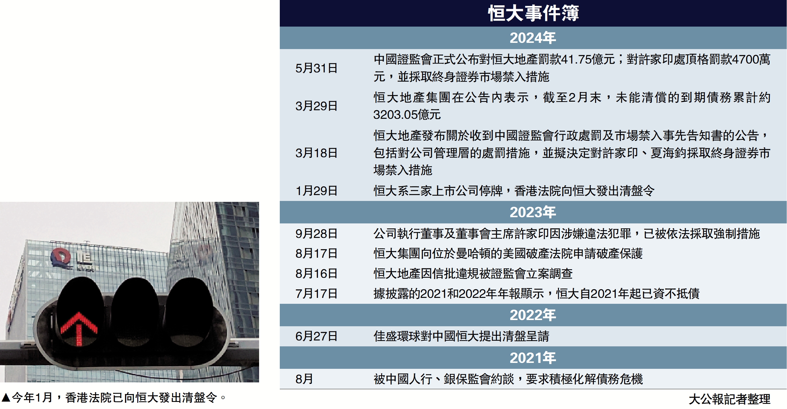 【大公報訊】中國證監會官網宣布,對恒大地產債券欺詐發行及信息披露違法案作出行政處罰決定,對恒大地產責令改正,給予警告,並罰款41.75億元(人民幣,下同),對恒大地產時任董事長、實際控制人許家印處以頂格罰款4700萬元,並採取終身證券市場禁入措施。恒大地產相關負責人接受內媒採訪時表示,公司目前仍全力推進保交樓等重點工作,目前全國範圍內保交樓項目已經完成超過80%,公司將全力配合中證監等監管部門做好後續工作。