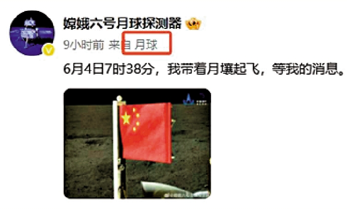 6月3日下午,「嫦娥六號月球探測器」以第一人稱發表了第一條微博:「大家好,我是嫦娥六號,現在我正在月球挖土。」評論區的留言當中,不少網友表示「記得早點回來」「幫我給嫦娥問個好」。