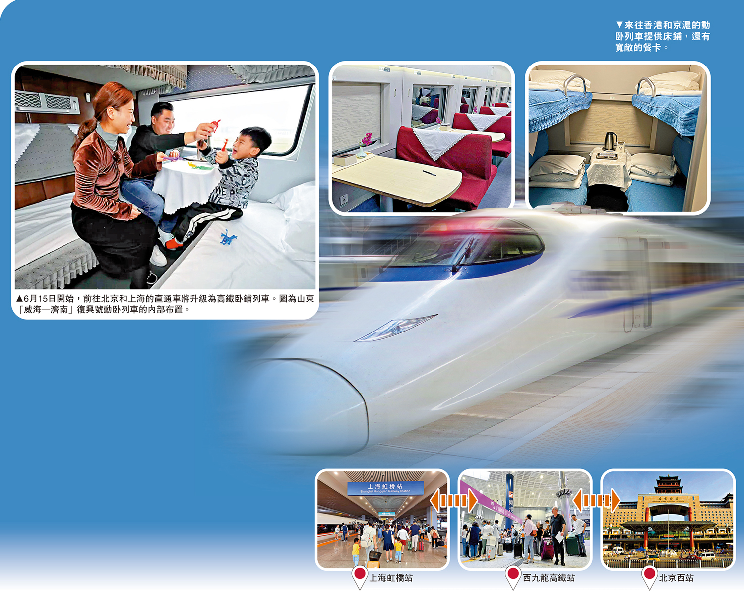 香港與內地民眾往來頻繁,跨境交通服務持續優化。京港和滬港直通車下周六(15日)起,升級由高鐵卧鋪動車運行,車程縮短8至12小時,香港改以西九龍作總站,將以「夕發朝至」模式行駛,即傍晚出發、早上抵埗,首次引入有睡眠設施的卧鋪列車,乘客可以節省一晚酒店費用。