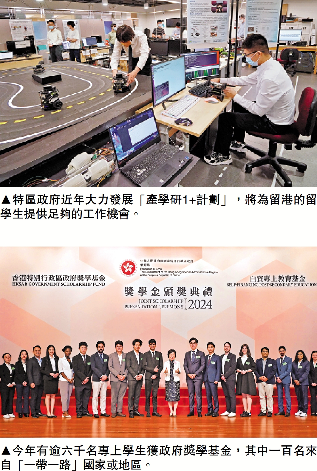 此外,施政報告提出擴大獎學金計劃,特區政府會向「政府獎學基金」額外注資10億元,2024/25學年起增加「一帶一路獎學金」的名額五成;並會逐步增加香港博士研究生獎學金計劃名額,由每學年300個提升三分之一至400個,吸引更多傑出人才來港就學及進行研究。當局亦會持續推行「香港卓越獎學金計劃」,每年資助100名優秀本地學生升讀境外知名大學,擴闊本地學生的環球視野。另外為增加宿位,教資會資助大學將繼續推展多項宿舍項目,目標在2027年之前增加合共約13500個宿位,照顧包括新增學生的需求。