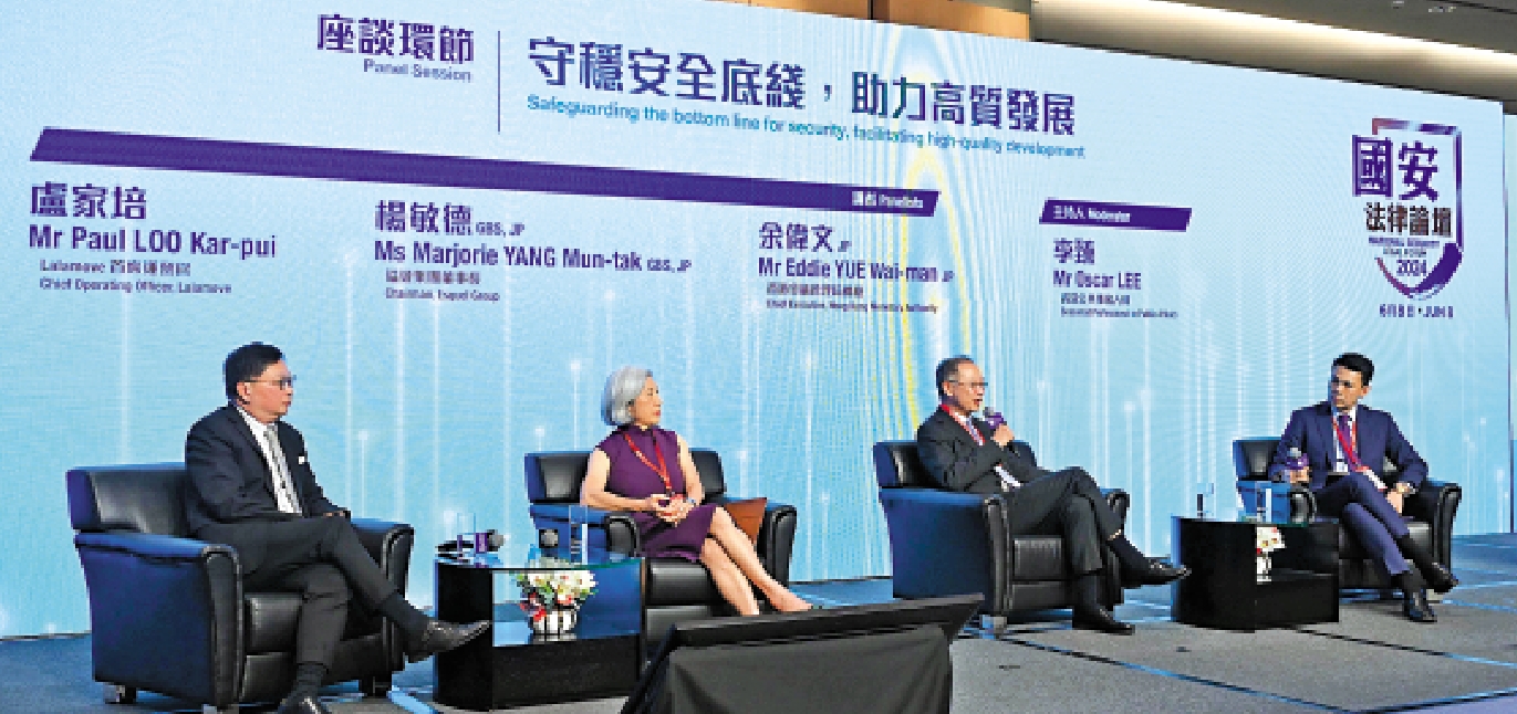 【大公報訊】記者龔學鳴報道:主題為「守穩安全底線,助力高質發展」的座談環節,邀請了金管局總裁余偉文、溢達集團董事長楊敏德、Lalamove首席運營官盧家培參與討論,分享香港維護國家安全法律機制如何更好為不同界別人士創造一個更安穩的環境,助力香港進一步融入國家發展大局。他們亦都強調了當今時代,網絡數據安全對於維護國家安全的重要性。