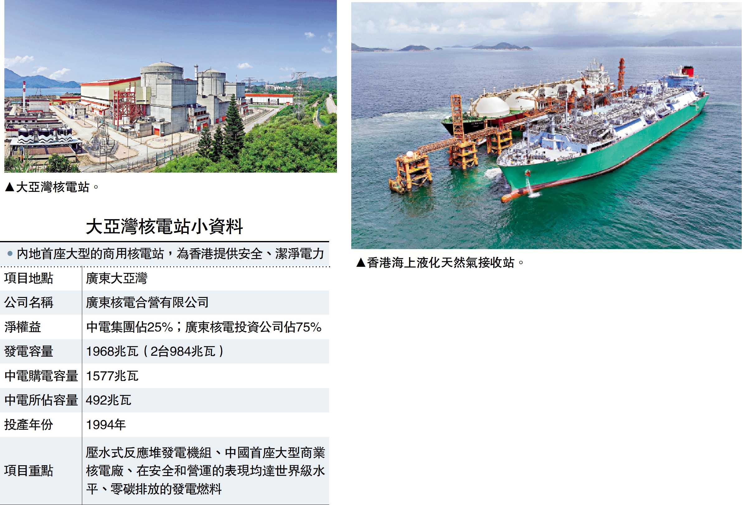 儘管當年中國沒有建設核電站的先例,中電憑着獨特的投資眼光,特派人才去國外參加培訓,每位人才的培養資金高達26萬美元,因此中電稱這班人才為「黃金人」,這群「黃金人」也為中國核電工程發展奠定了堅實的基礎。大亞灣核電站於1994年正式投運,經過30年發展,目前年發電量逾450億度,輸入本港核電佔其總輸出量約80%,佔本港總電量四分之一,每年為港減少碳排750萬噸,是本港「淨零發電」重要一環。