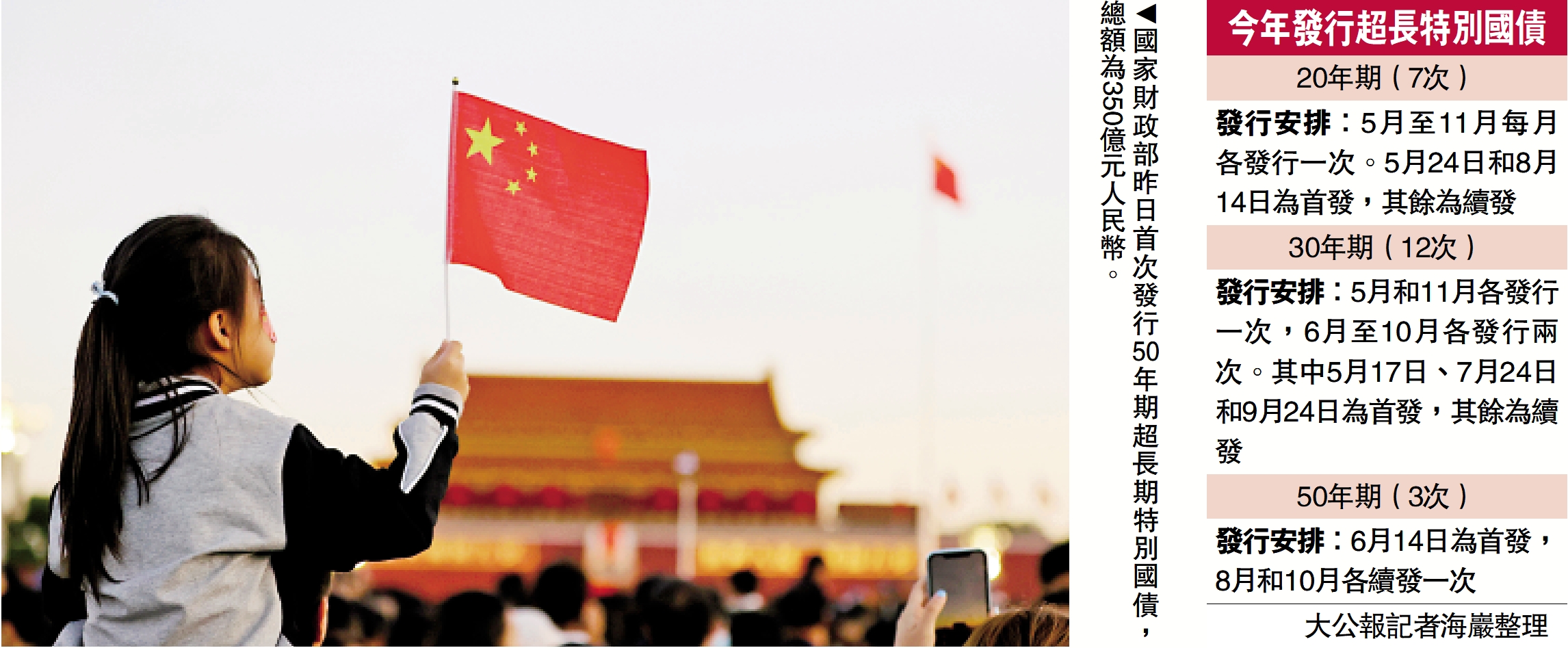 國家財政部昨日首次發行50年期超長期特別國債,總額為350億元(人民幣,下同)。在市場投資熱情較高下,全場認購倍數5.38倍,相當於超額認購4.38倍,均高於此前20年期、30年期特別國債的全場倍數。50年期超長期特別國債的票面利率通過競爭性招標後為2.53厘,較此前發行的30年期特別國債首發和續發的中標利率為低。分析稱,超長期特別國債有助於優化中國債券期限品種結構,滿足不同投資者對投資期限和投資收益的偏好。但另一方面,也提示投資者注意債券價格波動帶來的市場風險。\大公報記者 海巖