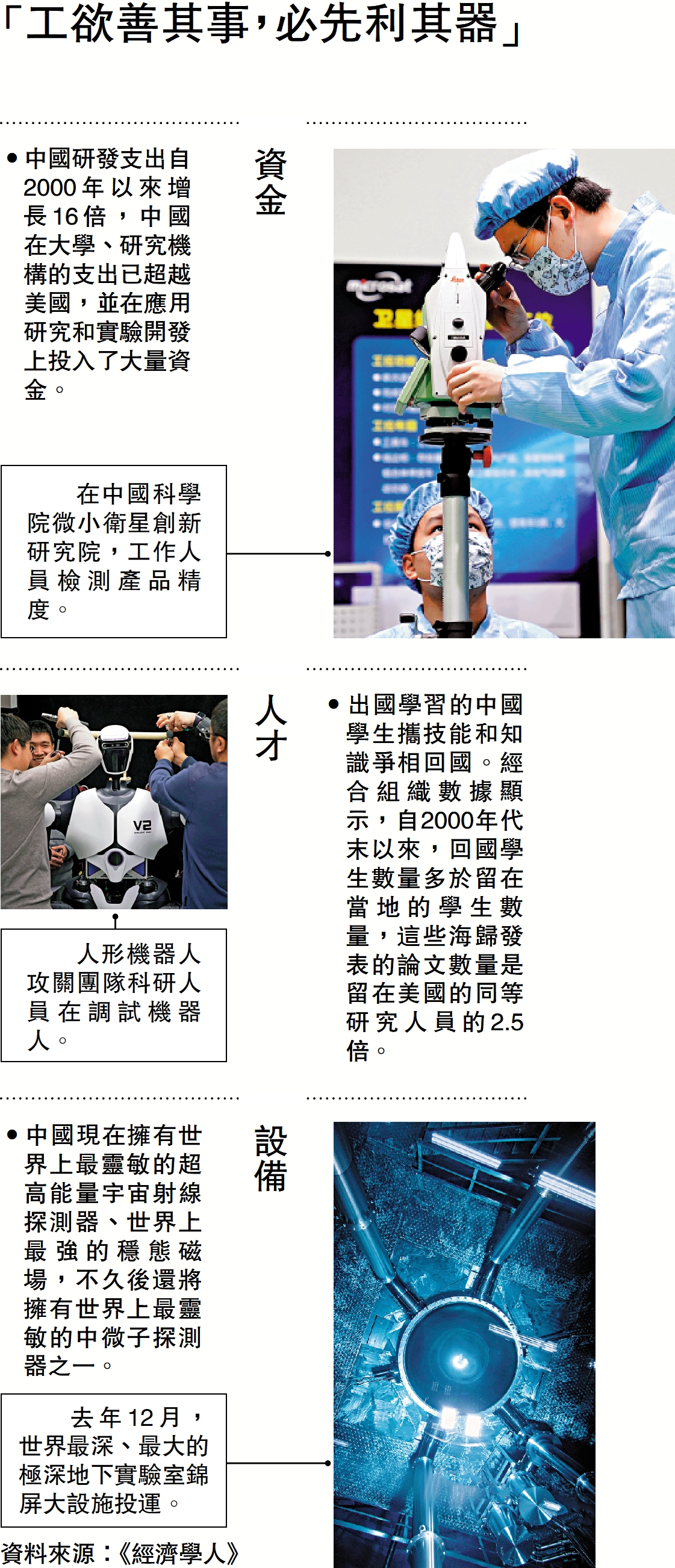 •中國研發支出自2000年以來增長16倍,中國在大學、研究機構的支出已超越美國,並在應用研究和實驗開發上投入了大量資金。