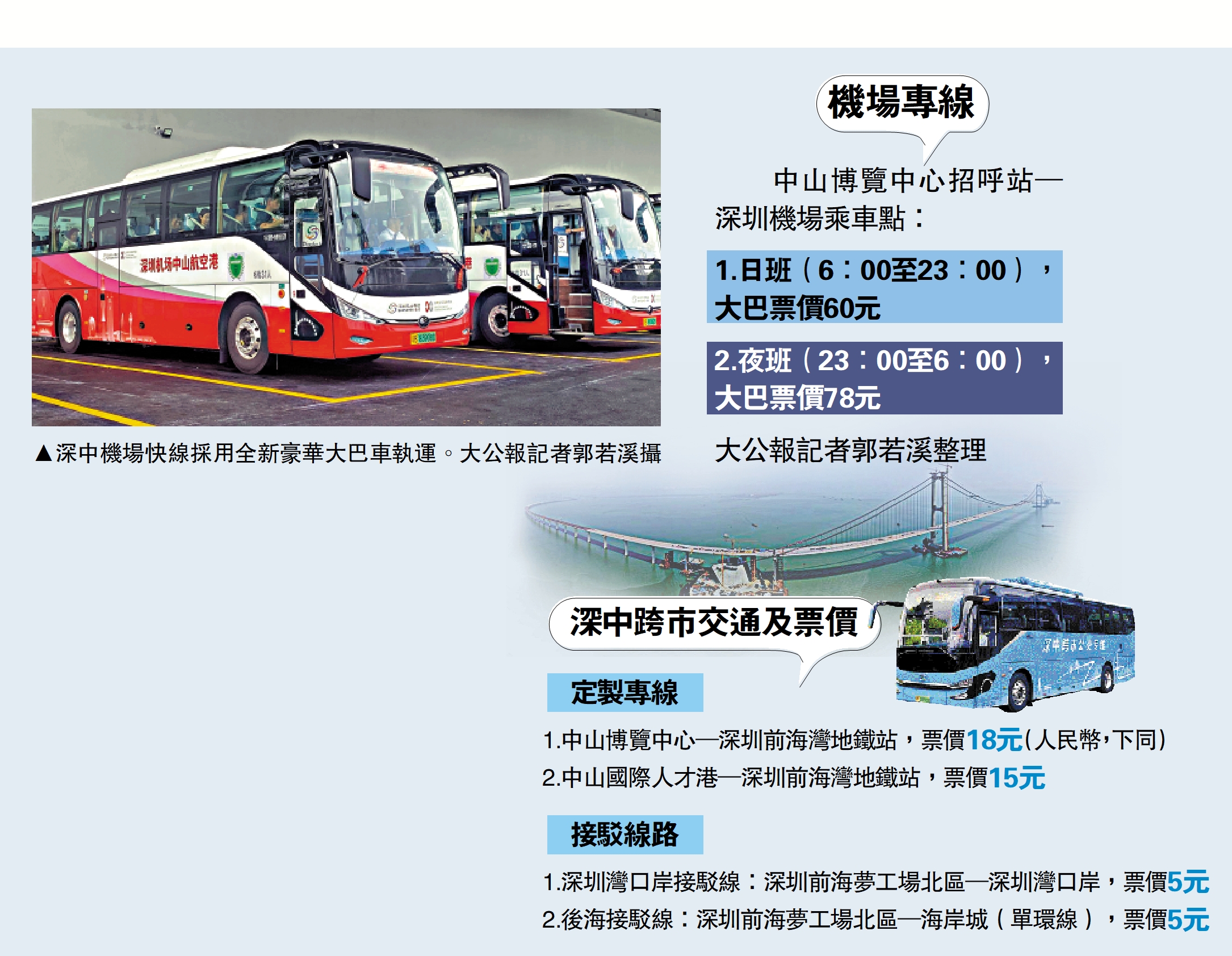 【大公報訊】記者郭若溪深圳報道:深中通道即將通車之際,深圳機場在航站樓開設深中機場快線專屬候車區,同時將與深中通道同步啟用在中山的深中航空港,為來珠江西岸的旅客提供交通接駁服務。近日,深圳機場安排約40名旅客從深圳機場出發,搭乘深中機場快線順利往返中山,完成了深中航空港和深中機場專線的雙向保障全流程測試,為正式投用打下堅實基礎。未來,深中機場快線每天車次將高達72班,旅客單程50分鐘即可橫跨珠江,往返於深圳和中山之間。