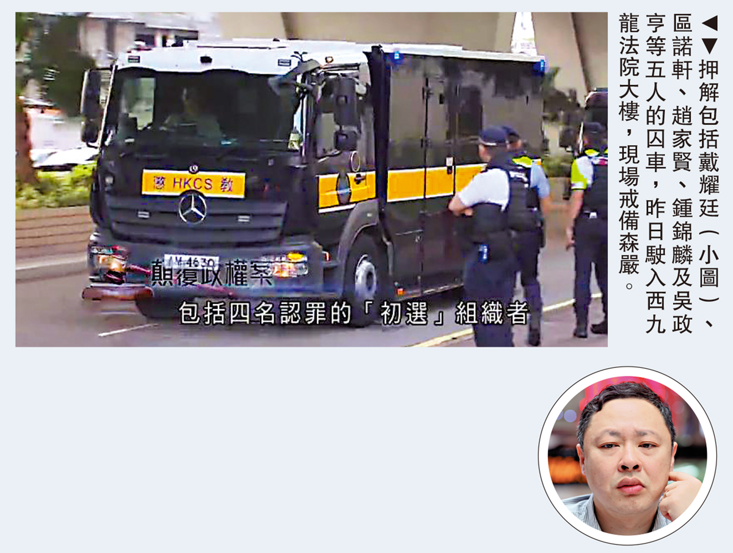 【大公報訊】記者龔學鳴報道:「35+顛覆政權」案昨日繼續聽取5名被告求情,包括認罪被告戴耀廷、區諾軒、趙家賢、鍾錦麟,以及被裁定罪成的被告吳政亨。法官拒絕接受辯方陳詞指法庭量刑時不應將戴耀廷於香港國安法實施前的言行納入為考慮因素,而香港國安法生效後戴耀廷已不再是計劃主腦。另區諾軒的代表大律師陳慕賢陳詞指,被告已盡力協助控方作供,冀法庭量刑時至少減刑一半。法官則提出減刑時須考慮各從犯證人證供的價值。