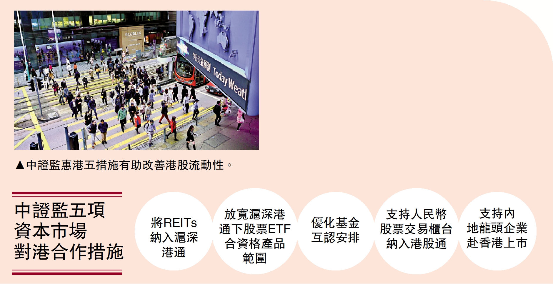 另外,陳政生指出,將REITs納入滬深港通,有助將內地和香港合資格的REITs納入滬深港通標的,進一步豐富滬深港通交易品種。就中長期而言,5項對港合作措施將會鼓勵金融機構參與更多金融產品創新,滿足投資者多樣化投資需求,助力推動本地資本市場發展。