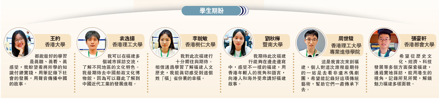 希望從歷史文化、經濟、科技發展等多個方面探索福建,通過實地採訪,能用港生的視角,記錄所見所聞,解鎖魅力福建多樣面貌。
