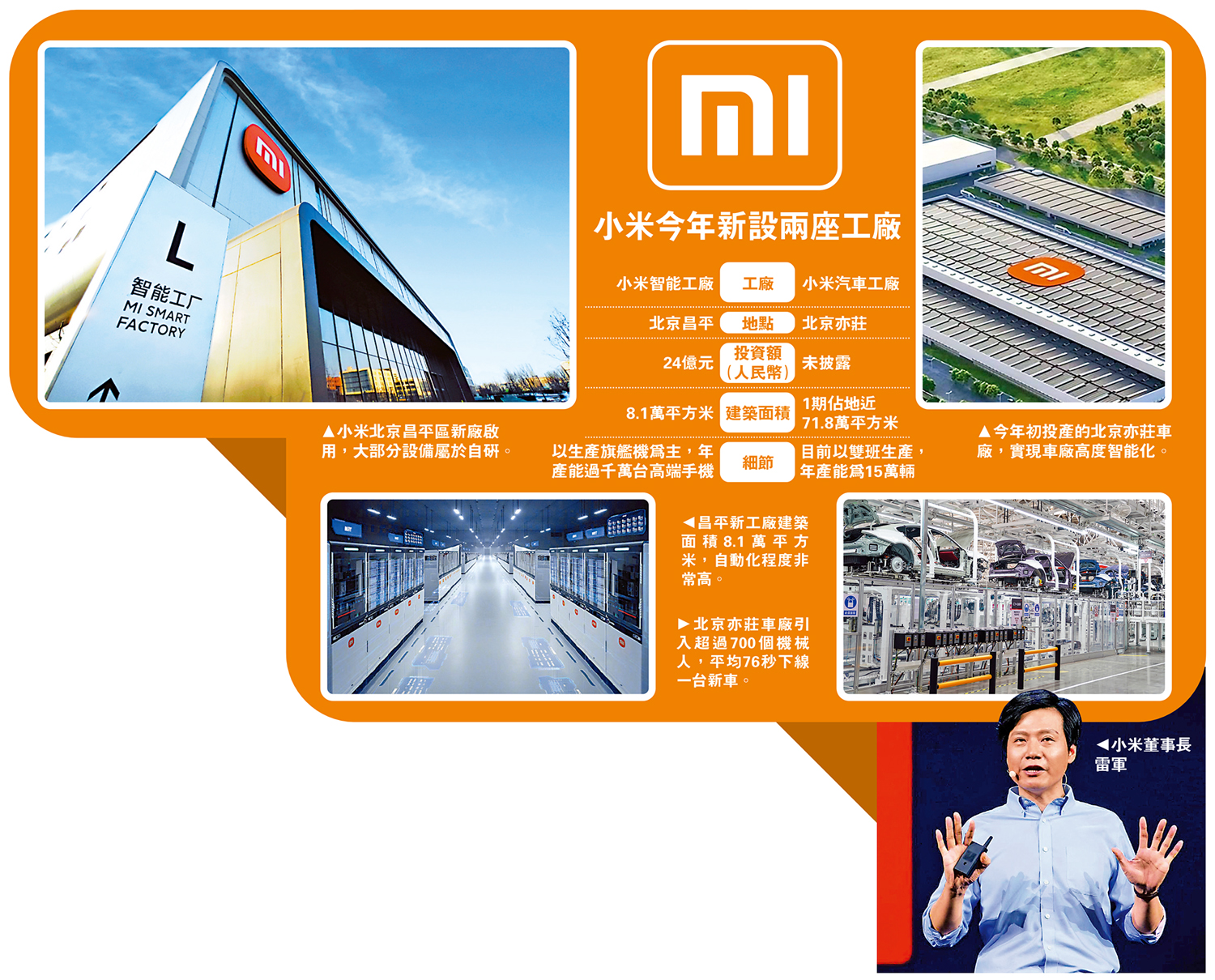 雷軍形容:「兩座大型的現代化工廠落成投產,小米在硬核科技路上又邁出一大步!」