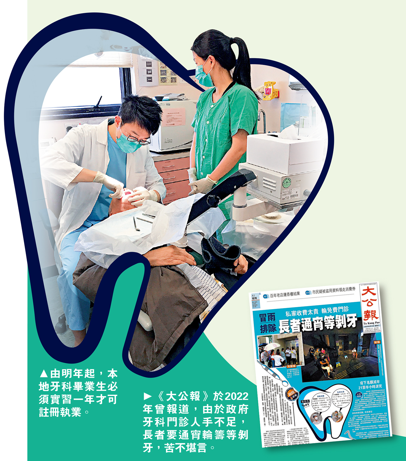 就牙醫畢業生實習安排,他重申並非要解決公營牙醫不足問題。實習安排不是牙醫學院教學課程的延伸,而在資深牙醫督導下,畢業生在不同單位服務,為未經篩選的真實病人作診療,絕非牙醫學院教學培訓和模擬訓練能夠比擬。