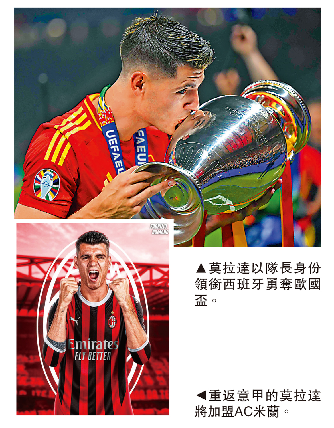 【大公報訊】據ESPN FC報道:就在法國隊長麥巴比登陸西甲之際,西班牙隊長反而離開西甲,說的是馬德里體育會前鋒艾華路莫拉達。莫拉達早前表示回到西甲踢球卻不受重視,很想再次出國效力,結果AC米蘭以1300萬歐元(約1.1億港元)啟動其買斷條款,如願將莫拉達帶回意甲。