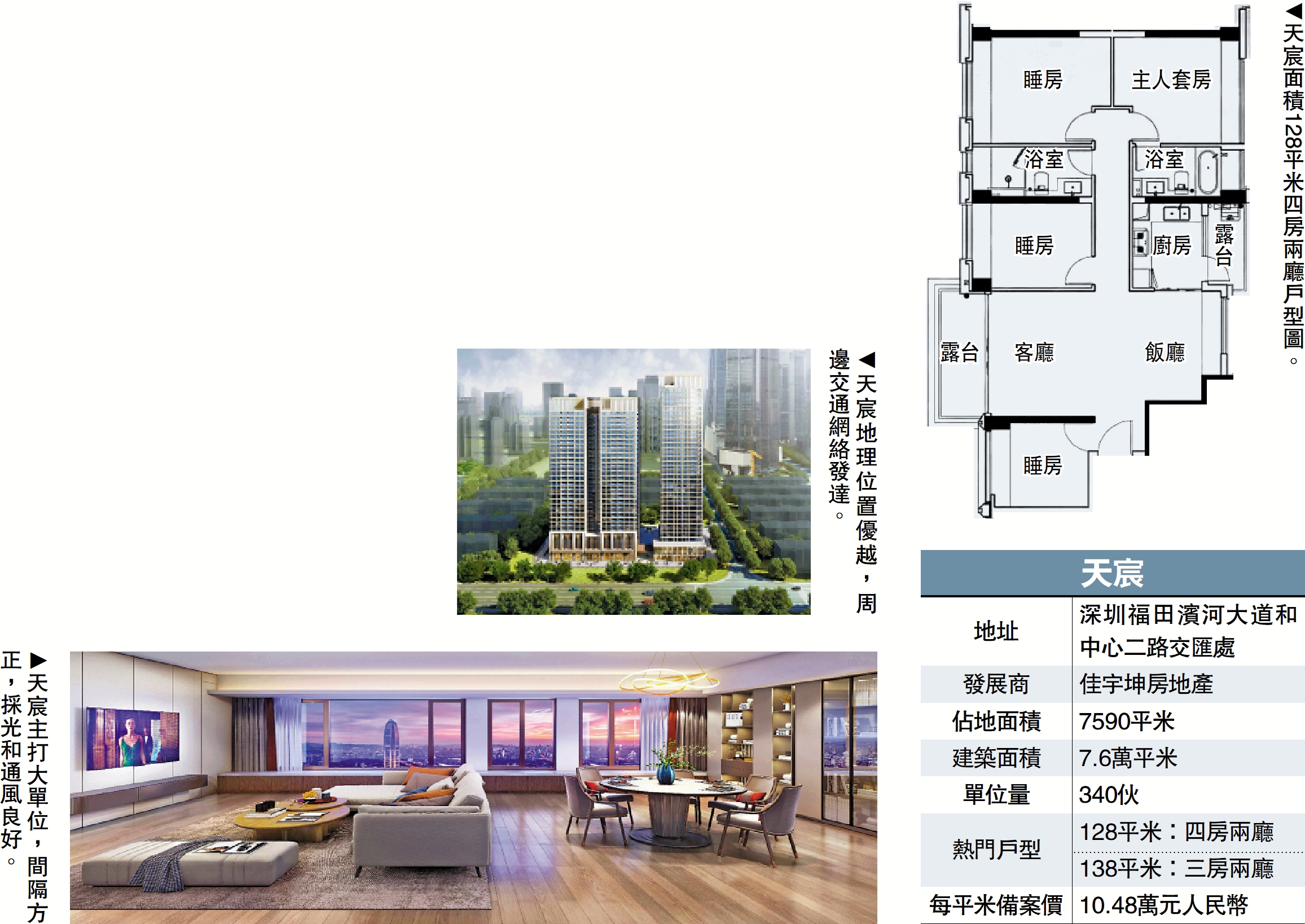 價格方面,該盤的每平米備案價約10.48萬元人民幣,相對周邊的同類型物業,天宸的性價比相對較高。