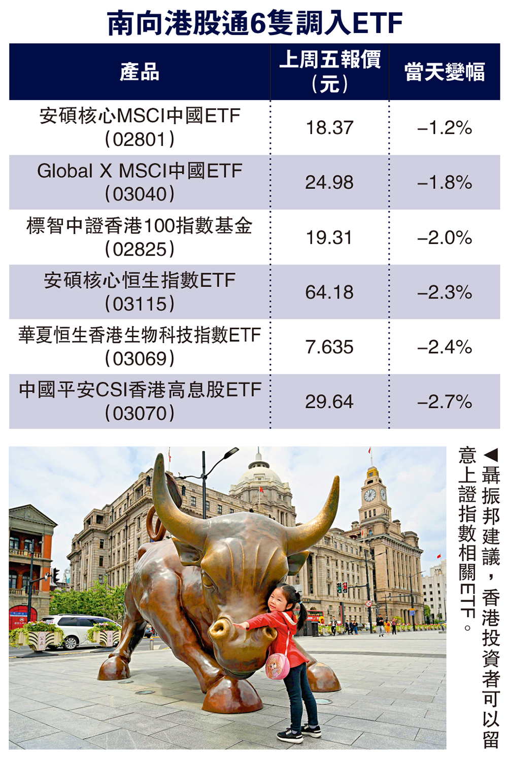 南向港股通ETF則增加6隻至16隻產品。新納入ETF包括安碩中國核心MSCI中國ETF(02801)、華夏恒生香港生物科技指數ETF(03069)、中國平安CSI香港高息股ETF(03070)等。聶振邦認同,被納入南向ETF,將可以增加這些產品的流動性,而伴隨更多ETF產品納入,有助香港ETF市場發展。