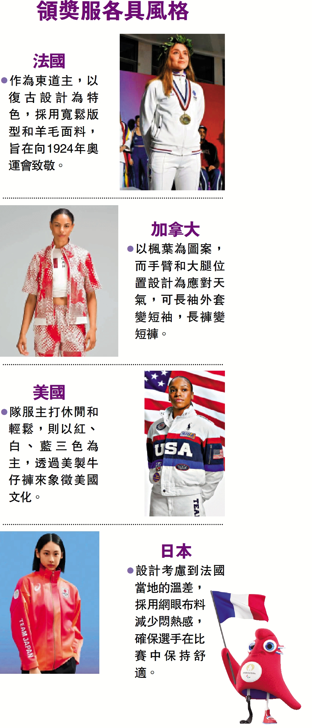●作為東道主,以復古設計為特色,採用寬鬆版型和羊毛面料,旨在向1924年奧運會致敬。