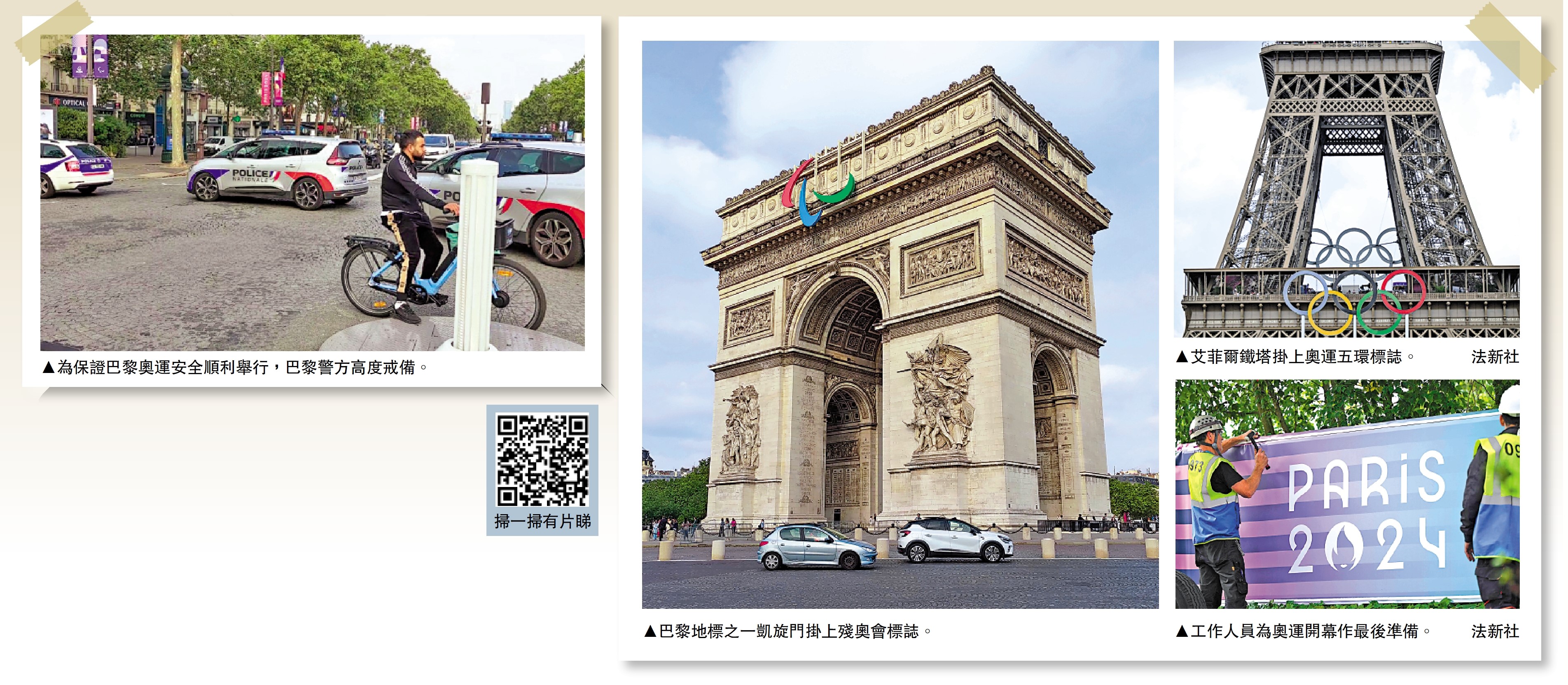 距離巴黎奧運會開幕只餘一天,巴黎市內已經充滿着濃厚的奧運氣氛。記者所見,作為巴黎著名的景點之一,凱旋門獲「添衣」,在頂部掛上了殘奧會標誌。另外,為確保奧運能夠安全順利舉行,巴黎警方部署了大量的警力,特別是在著名的景點和人多聚集的地方,記者目測,巡邏和站崗的警員遍布每個角落,大馬路上警車的警笛聲幾乎從未間斷過,持續在高度戒備中。\大公報特派記者 張銳(文、圖)