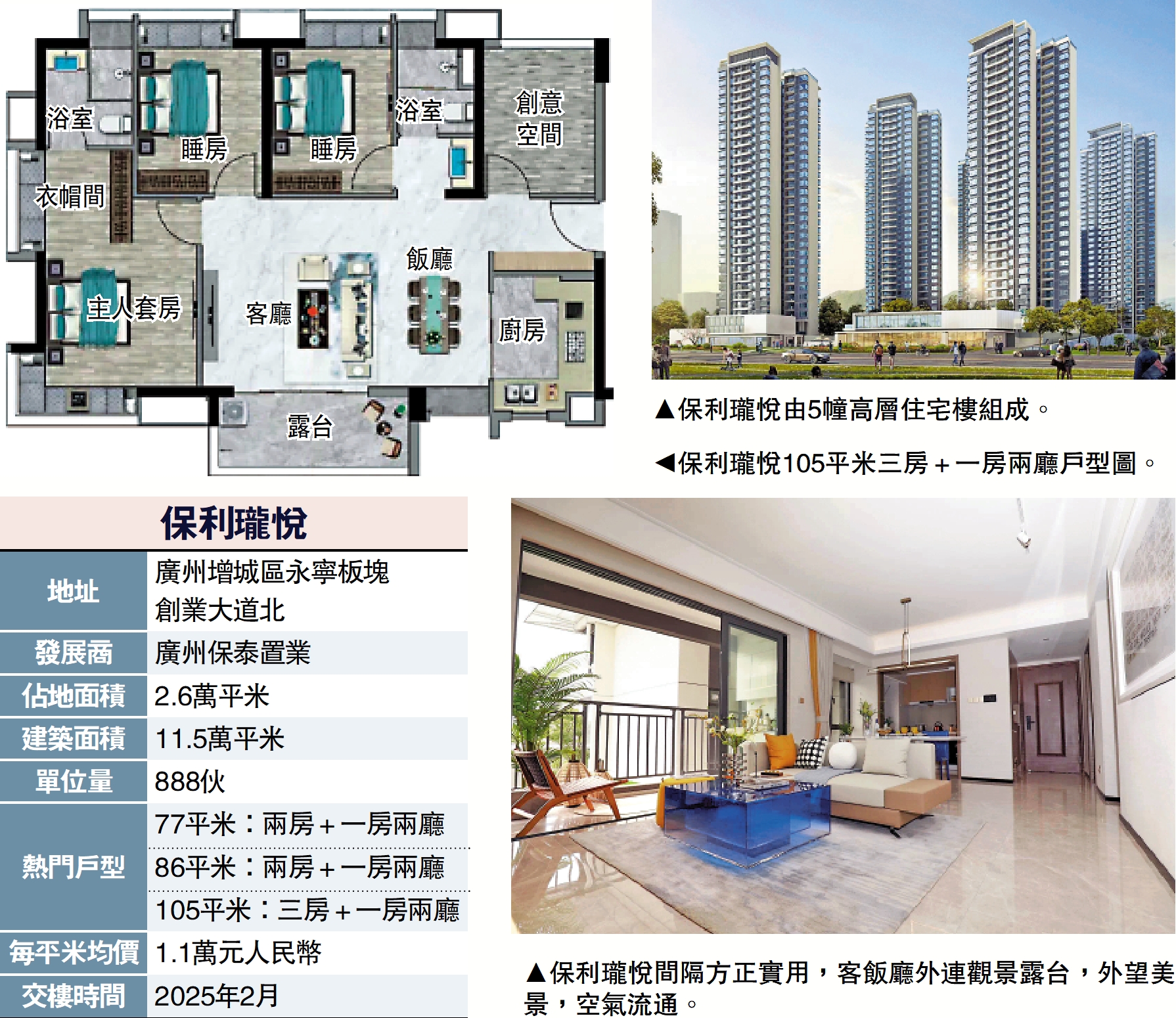 保利瓏悅位於廣州增城區永寧板塊創業大道北,坐落增城國家級經濟開發區(永寧),雄踞廣深科創走廊黃金動脈,世界500強聚集地,平安硅谷、阿里巴巴、富士康等眾多高新尖端企業進駐。項目提供888個單位,每平米均價1.1萬元人民幣(約1.18萬港元)。