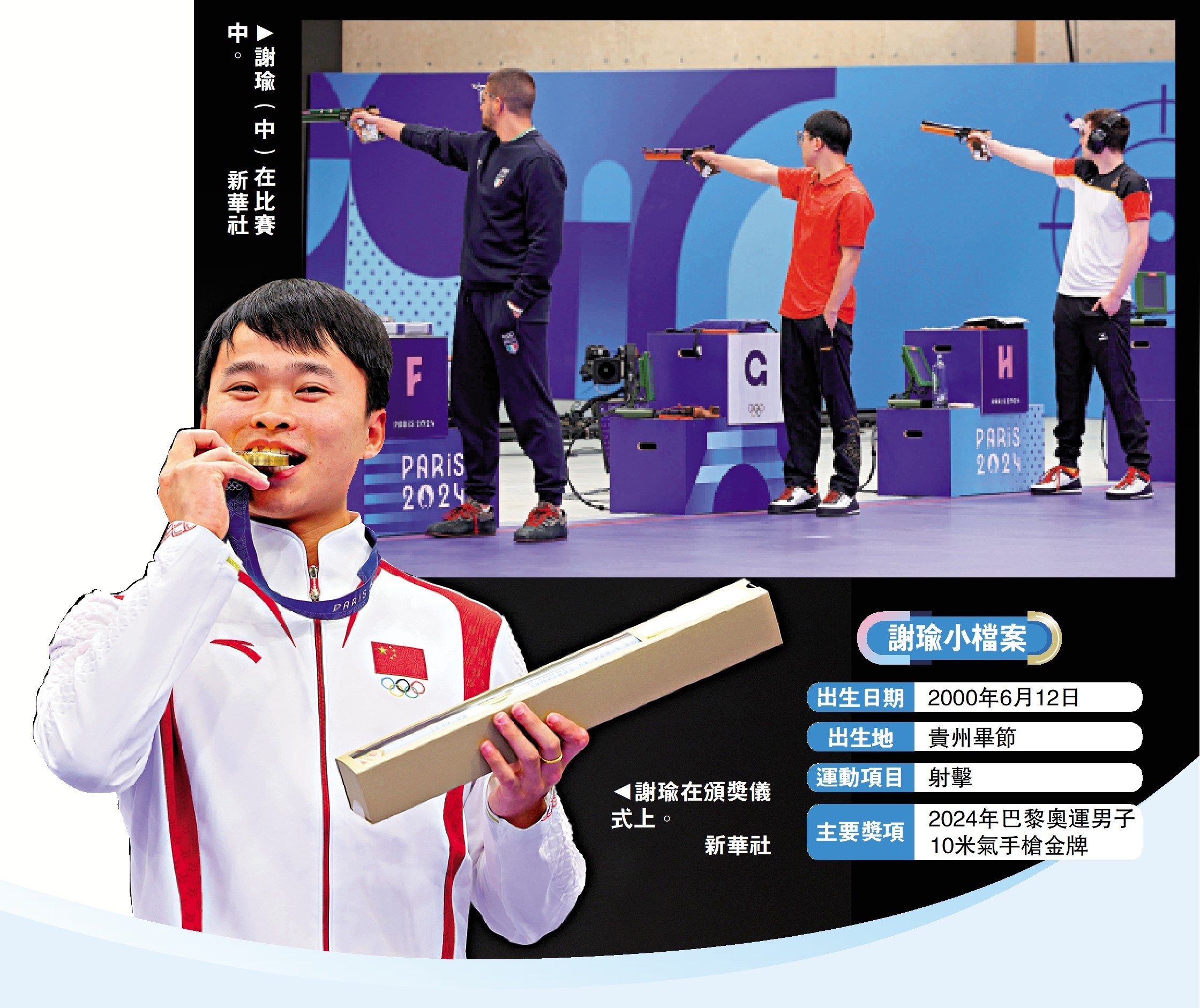 今年24歲的謝瑜來自貴州,在參加巴黎奧運之前,他曾在2023年射擊世界錦標賽和2024年射擊世界盃分站賽上拿到過冠軍。