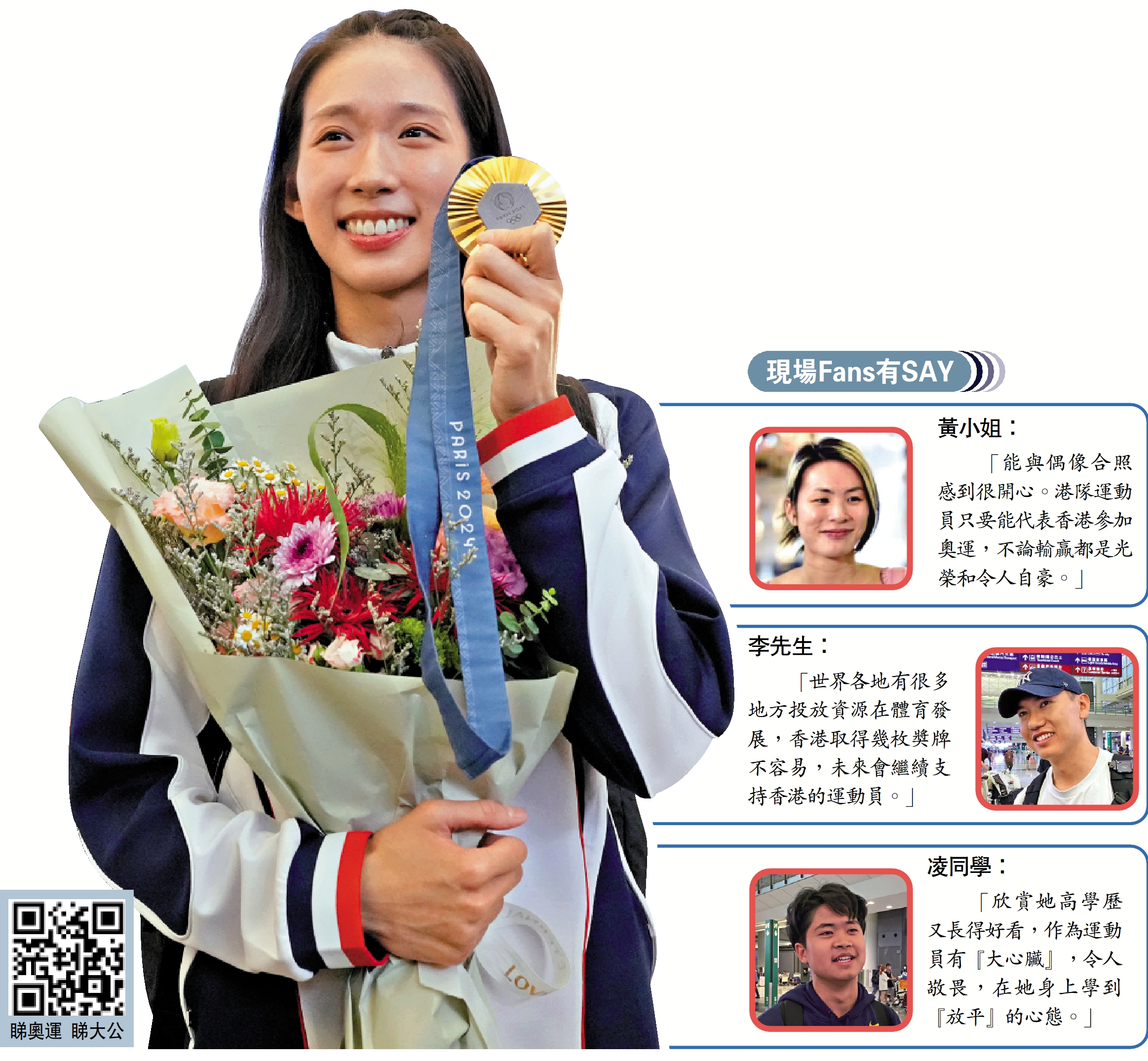 「能與偶像合照感到很開心。港隊運動員只要能代表香港參加奧運,不論輸贏都是光榮和令人自豪。」