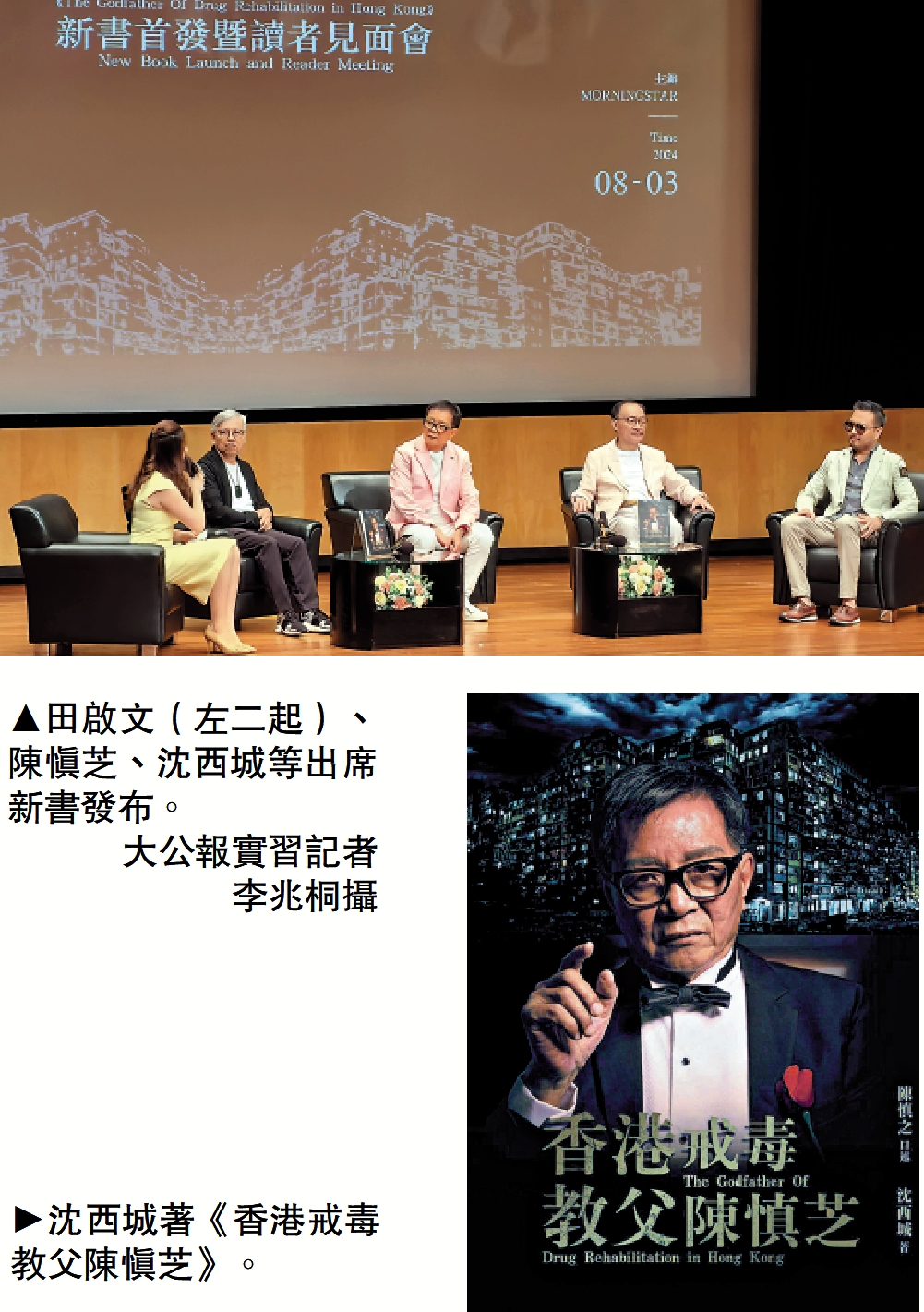 【大公報訊】大公報記者顏琨、實習記者李兆桐報道:《香港戒毒教父陳慎芝》新書發布暨讀者見面會昨日在香港會議展覽中心舉行,香港作家協會理事、該書作者沈西城,香港電影工作者總會前會長、資深導演田啟文等來到現場,與讀者近距離互動。陳慎芝亦講述自己擺脫毒癮的痛苦經歷,希望青少年遠離毒品。