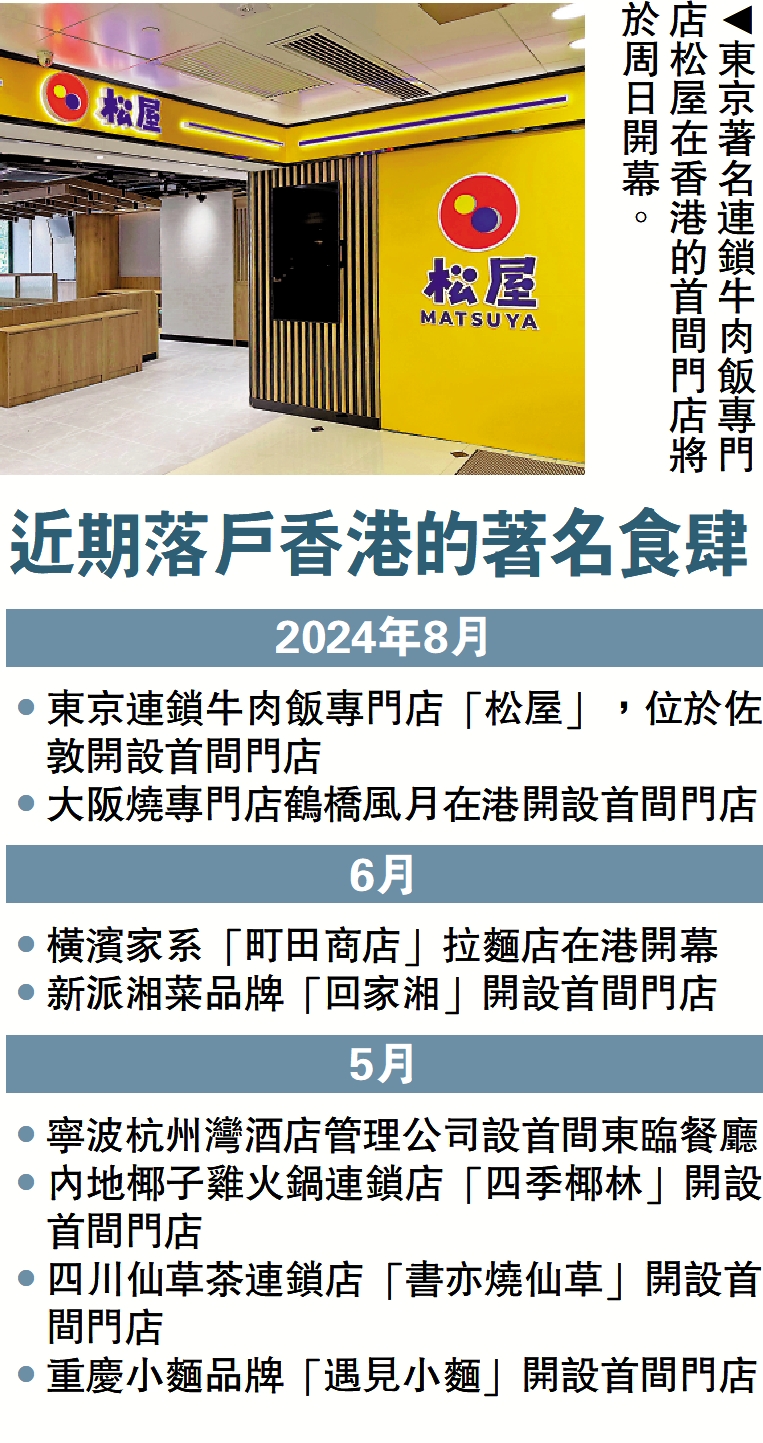 【大公報訊】香港作為國際大都會,魅力沒法擋,不斷吸引世界各地餐飲企業落戶香港。投資推廣署宣布,來自東京著名連鎖牛肉飯專門店「松屋」位於佐敦的首間門店將於周日(11日)正式開幕,顯示對香港的餐飲業前景充滿信心。
