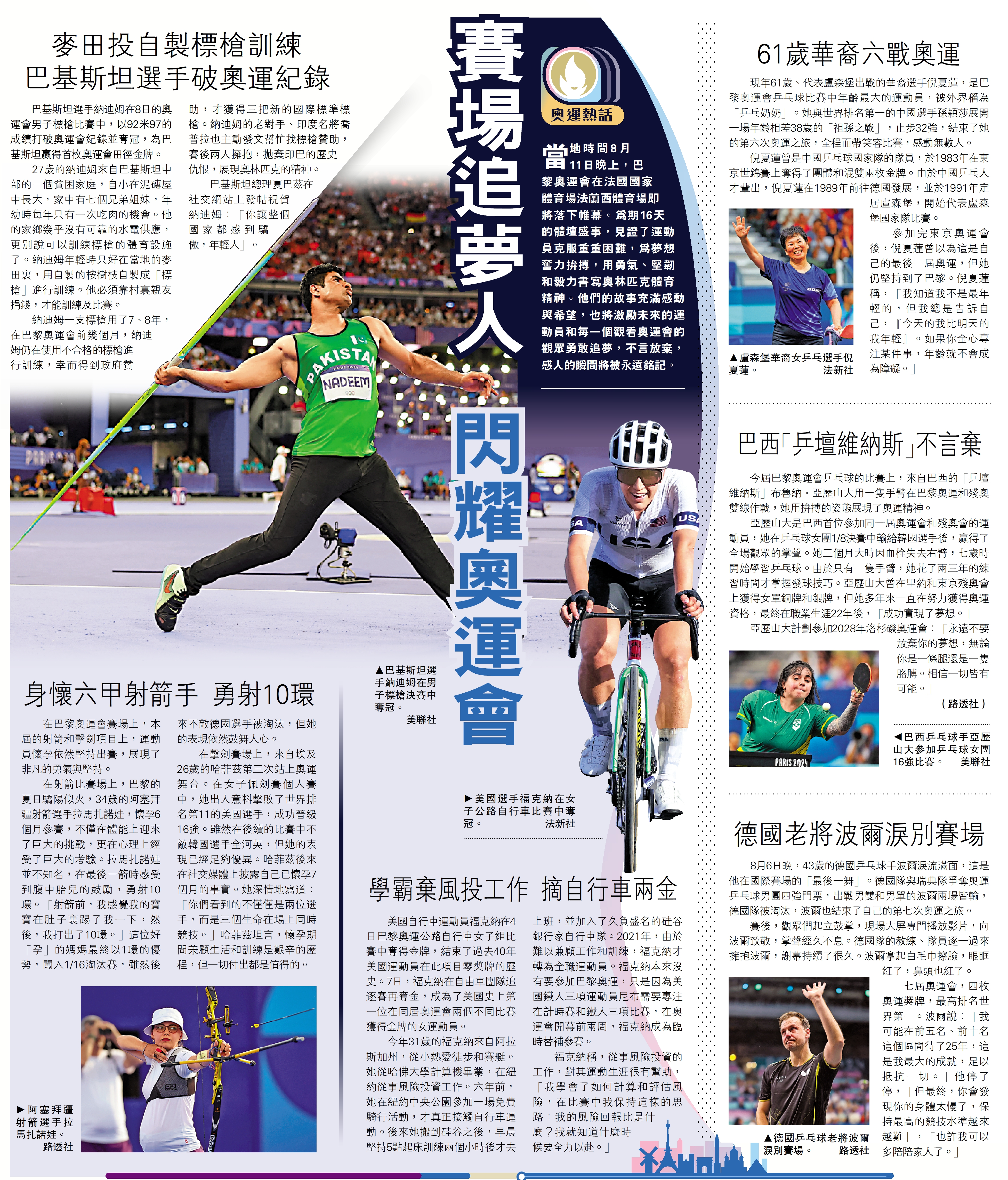 巴基斯坦選手納迪姆在8日的奧運會男子標槍比賽中,以92米97的成績打破奧運會紀錄並奪冠,為巴基斯坦贏得首枚奧運會田徑金牌。