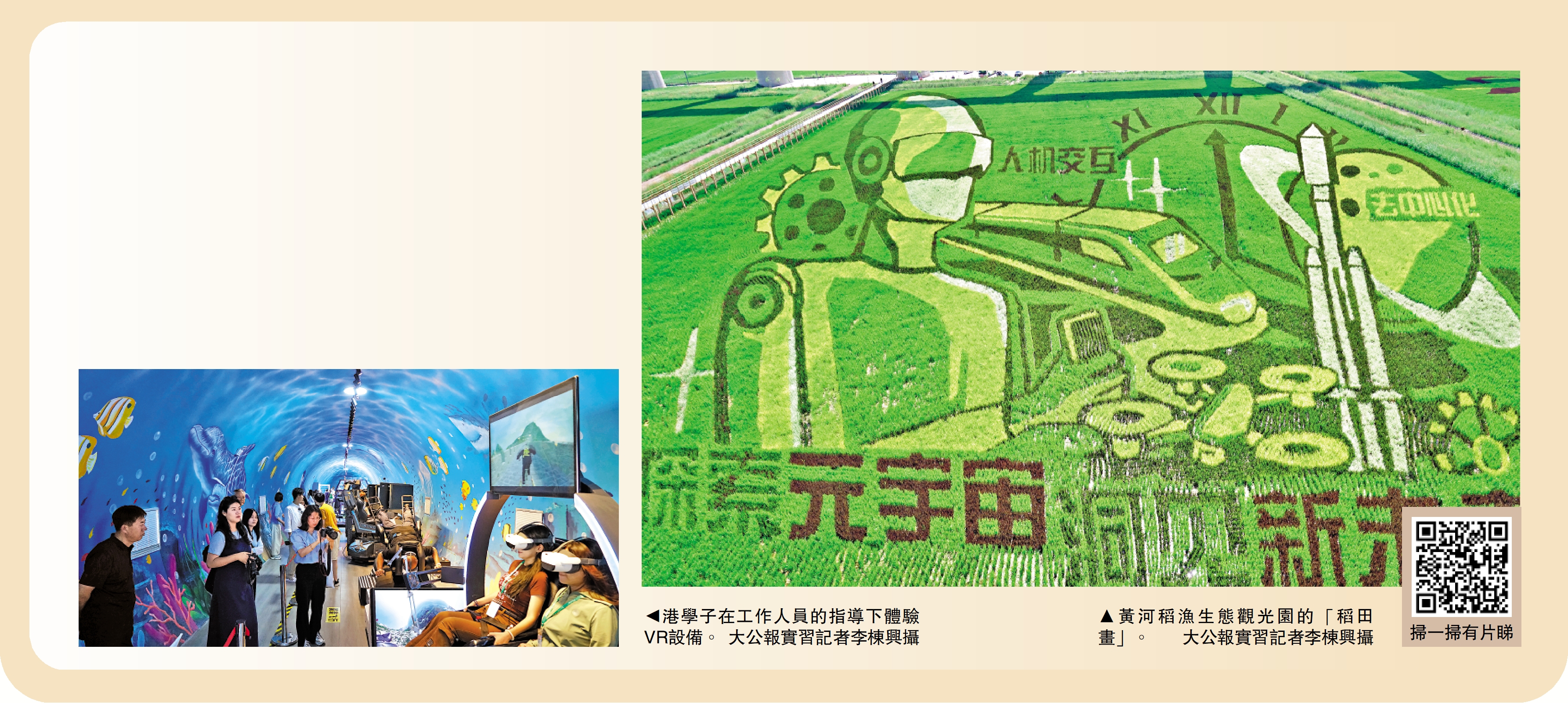 優美的鄉野風景、舒適宜人的氣候,位於準格爾旗的黃河稻漁生態觀光園成為親子遊、年輕人前來打卡的好去處。日前,參與「范長江行動」內蒙古行的香港傳媒學子抵達鄂爾多斯市準格爾旗,參觀黃河稻漁生態觀光園的農業與旅遊業一體化循環經濟發展模式。黃河稻漁生態觀光園副總經理劉慧接受採訪表示,「三年時間,這裏從鹽鹼地變成生態觀光園,走出一條特色鄉村振興道路。如今,憑藉抖音、小紅書等社交媒體的推薦,這裏成為熱門的生態遊打卡地。」\大公報實習記者 喬一翱、邱燦、方婷、呂亦宬、關凱正、劉秋樺、李棟興 鄂爾多斯報道