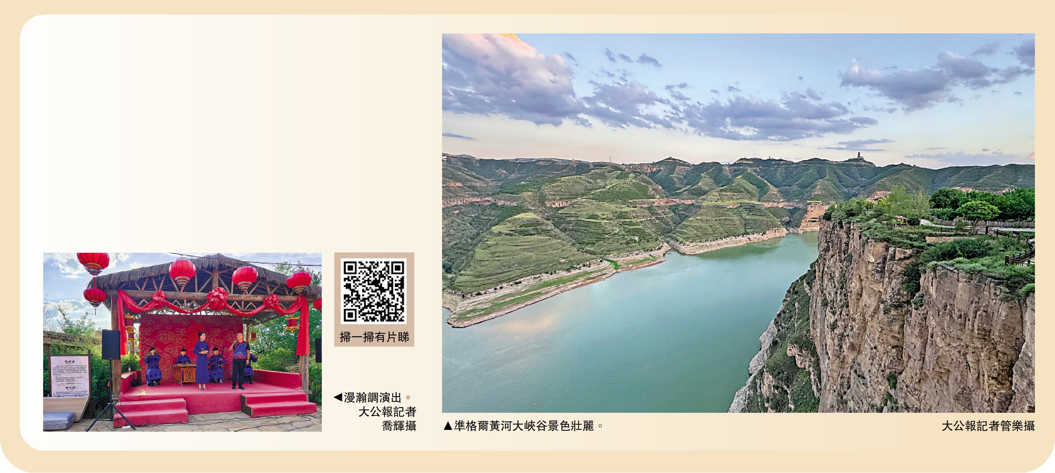 「陽婆婆落下又升起,月牙牙變圓見着你,咱二人相好手拉手,綿膀膀靠在懷裏頭」。作為國家級非物質文化遺產,漫瀚調起源於內蒙古鄂爾多斯市,是蒙漢民族相互融合形成的獨特藝術形式。初期的漫瀚調蒙語與漢語兼用,融入了陝北民歌的潤腔和旋法,將蒙漢兩族的音樂相融,使之得到交流與昇華。日前,香港傳媒學子前往凖格爾黃河大峽谷,坐在夕陽下的窰洞四合院裏,聆聽台上餘韻悠長的漫瀚調,與漫瀚調傳承人王瑞英、李智慧對談,感受這一文化走過的漫長歲月。\大公報實習記者 周汀柔、馮智然、趙錦誠、陳詠琳、蔡偉韜鄂爾多斯報道
