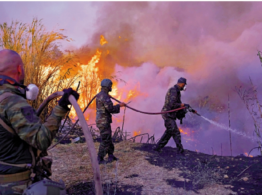雅典東北40多公里處11日發生山火。在高溫乾燥和強風天氣共同作用下,大火12日加速蔓延,雅典東北郊多座房屋和商舖被焚毀,部分地區電力中斷,約3萬人被迫撤離。希臘消防部門出動近200輛消防車、17架灑水飛機和16架直升機,並派出超過700名消防員參與滅火。希臘警方、電力部門也派出人員協助疏散被困人員,確保電力設施安全。
