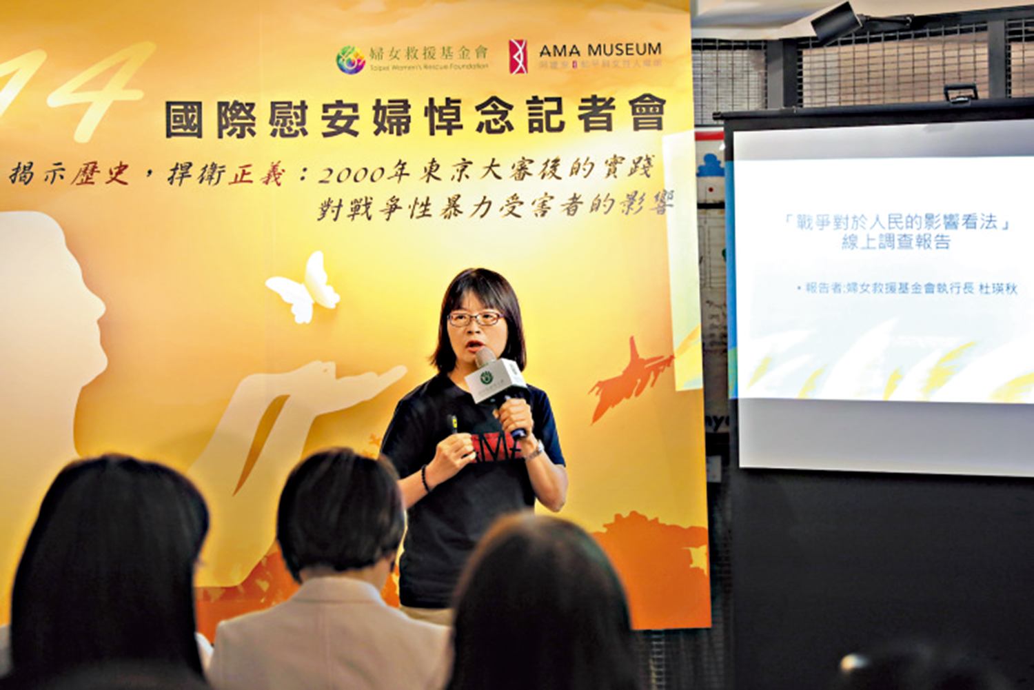 8月14日是國際慰安婦紀念日,台灣婦女救援基金會等民間團體在台北召開記者會,共同追悼緬懷台灣的慰安婦。基金會執行長杜瑛秋指出,台灣的「慰安婦」制度受害者受到性暴力,回台灣後更被污名化、歧視,因此除要求日本道歉、正視歷史外,台灣現行課綱也應加入相關內容,讓學生知道歷史真相。